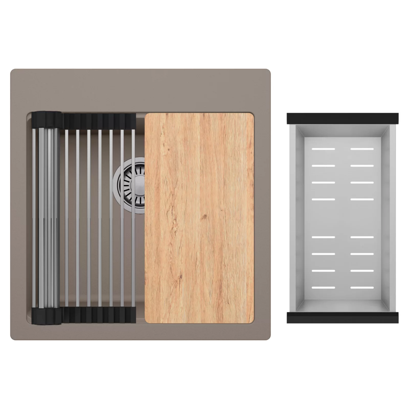 HD Infinity Tortora 48 egymedencés mosogatótálca szett, vágódeszkával, csepegtetőráccsal és kosárral, tortora