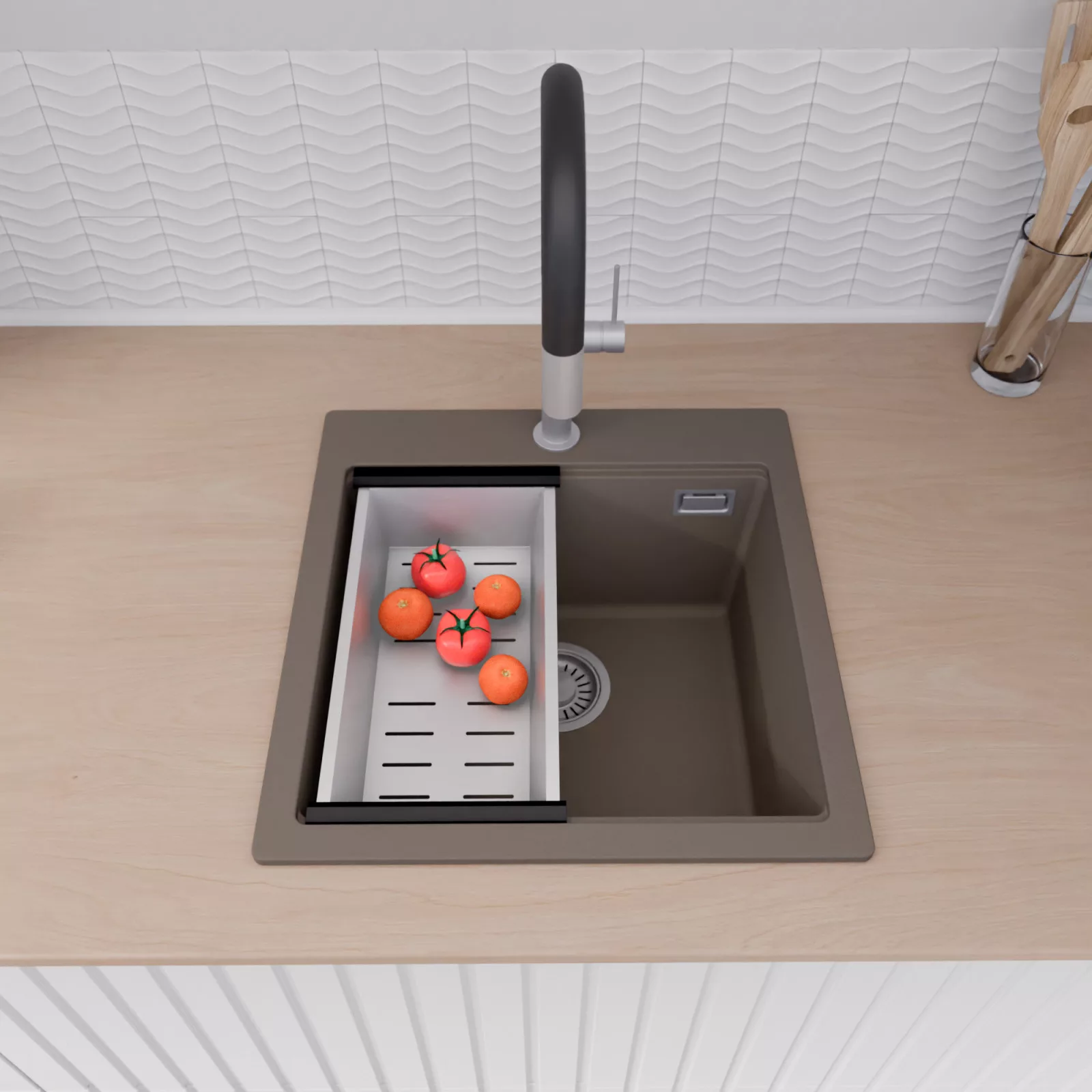 A mosogató prémium minőségű gránit kompozitból készült. Letisztult megjelenése mellett rendkívül praktikus, így bármilyen stílusú konyhába harmonikusan illeszkedik. A strapabíró gránit anyag hosszú távon is megbízható használatot garantál.