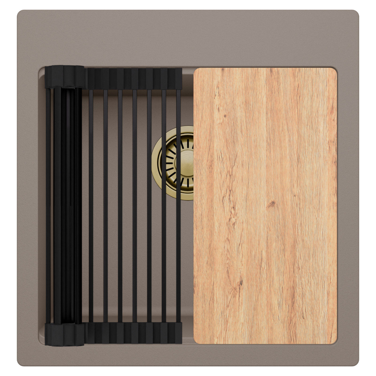 HD Infinity Tortora 48 egymedencés mosogatótálca szett, vágódeszkával és csepegtetőráccsal, tortora