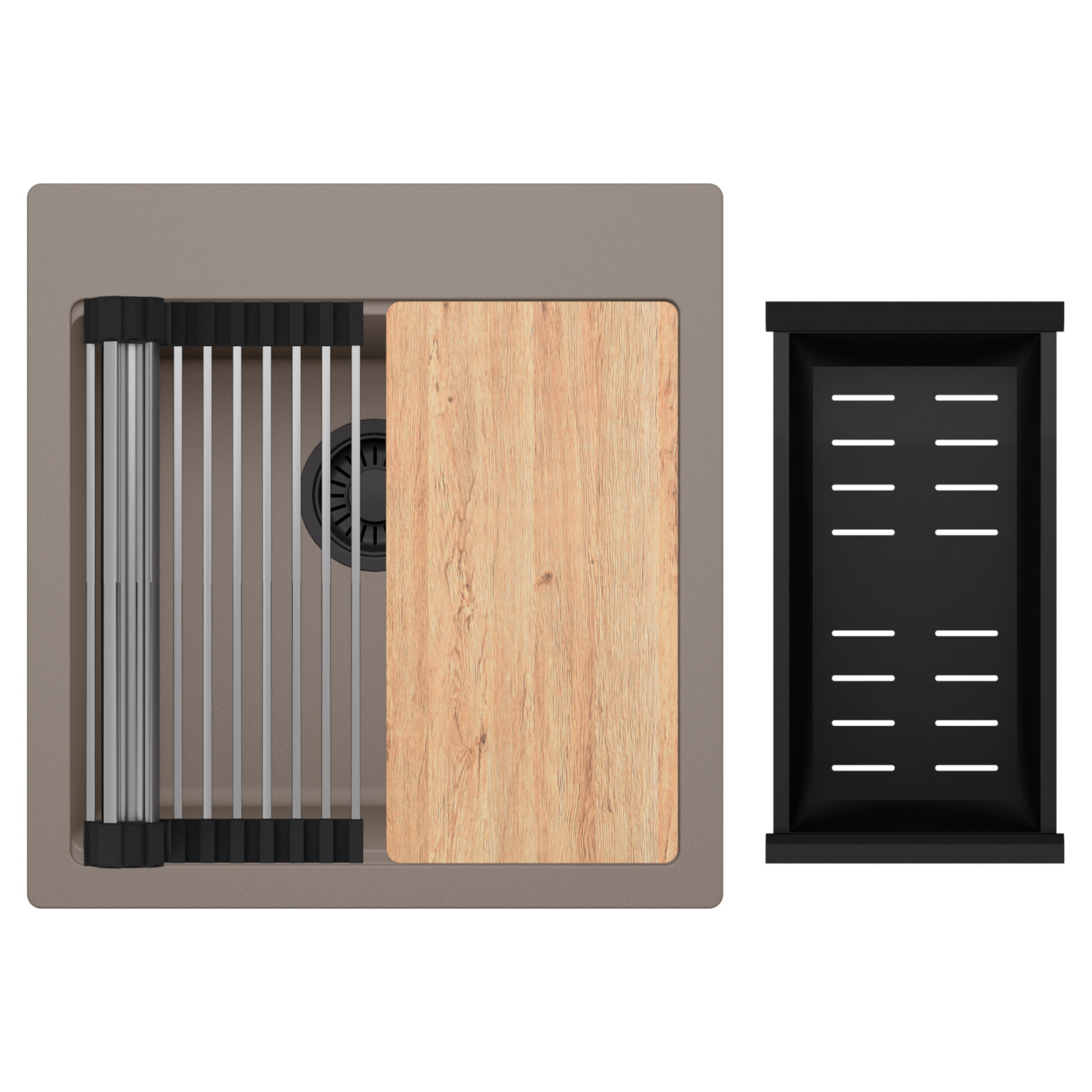 HD Infinity Tortora 48 egymedencés mosogatótálca szett, vágódeszkával, csepegtetőráccsal és kosárral, tortora