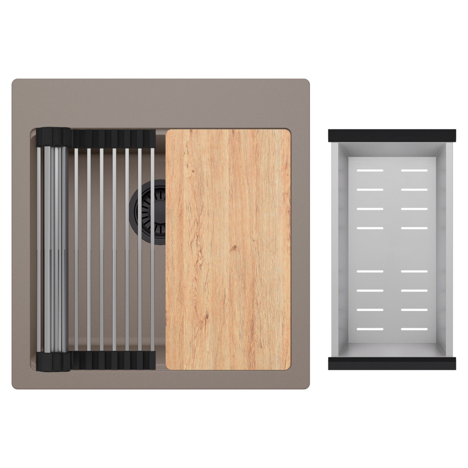 HD Infinity Tortora 48 egymedencés mosogatótálca szett, vágódeszkával, csepegtetőráccsal és kosárral, tortora