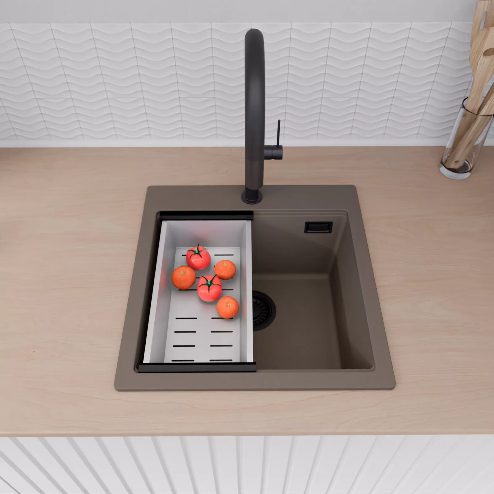HD Infinity Tortora 48 egymedencés mosogatótálca szett, vágódeszkával és csepegtetőkosárral, tortora