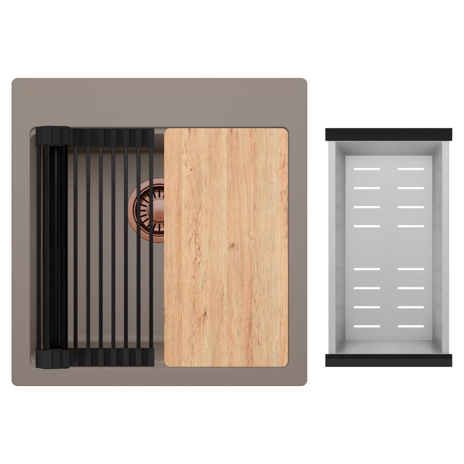 HD Infinity Tortora 48 egymedencés mosogatótálca szett, vágódeszkával, csepegtetőráccsal és kosárral, tortora