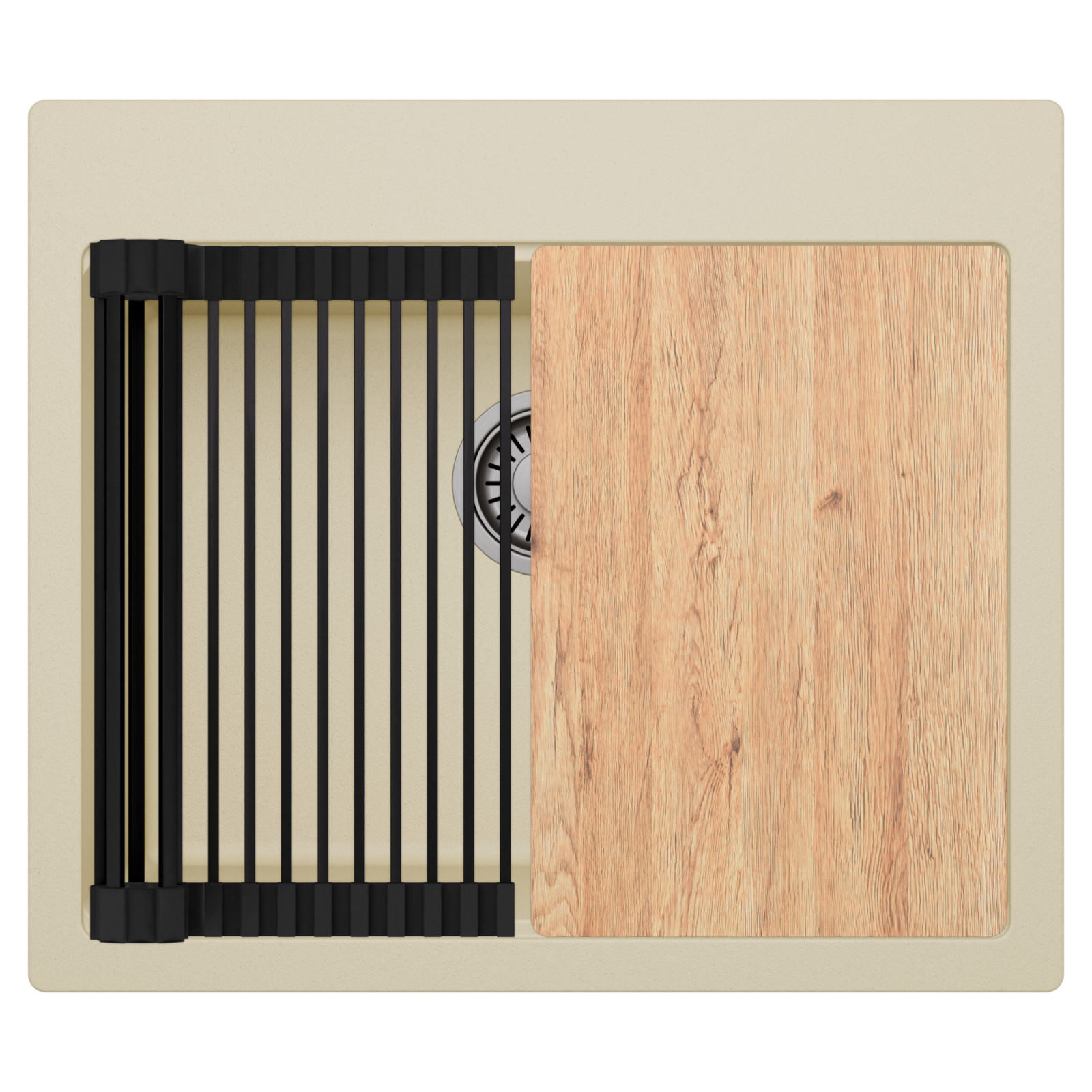 HD Infinity Beige 58 egymedencés mosogatótálca szett, vágódeszkával és csepegtetőráccsal, soft bézs