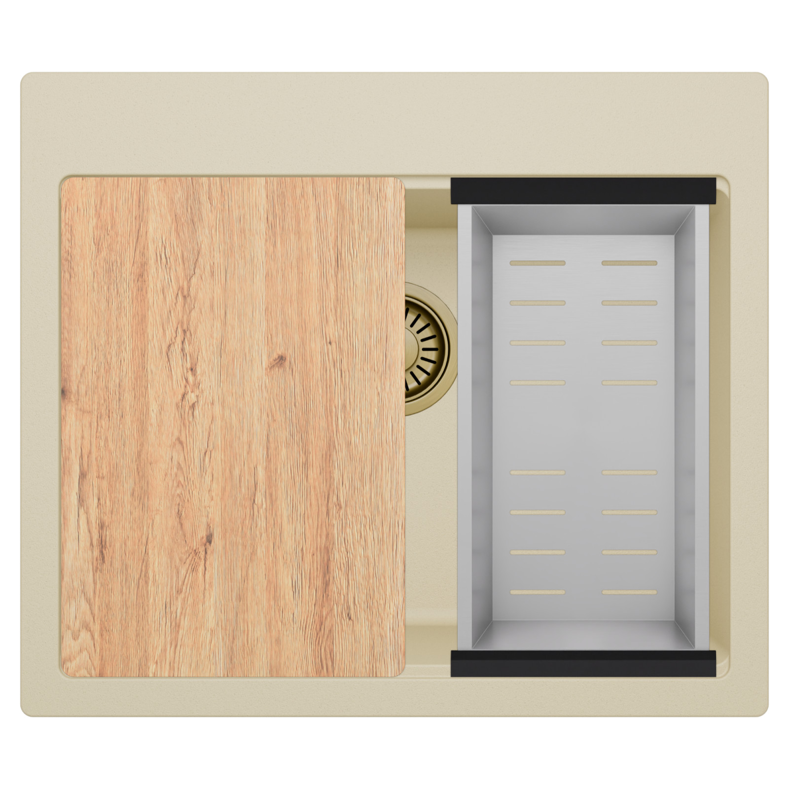HD Infinity Beige 58 egymedencés mosogatótálca szett, vágódeszkával és csepegtetőkosárral, soft bézs