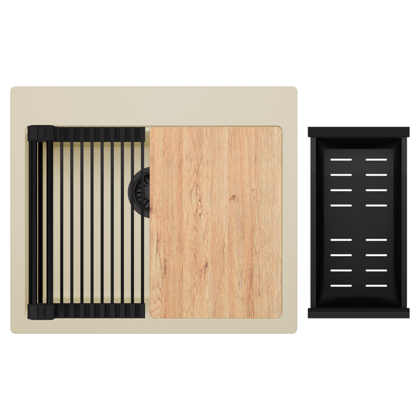 HD Infinity Beige 58 egymedencés mosogatótálca szett, vágódeszkával, csepegtetőráccsal és kosárral, soft bézs