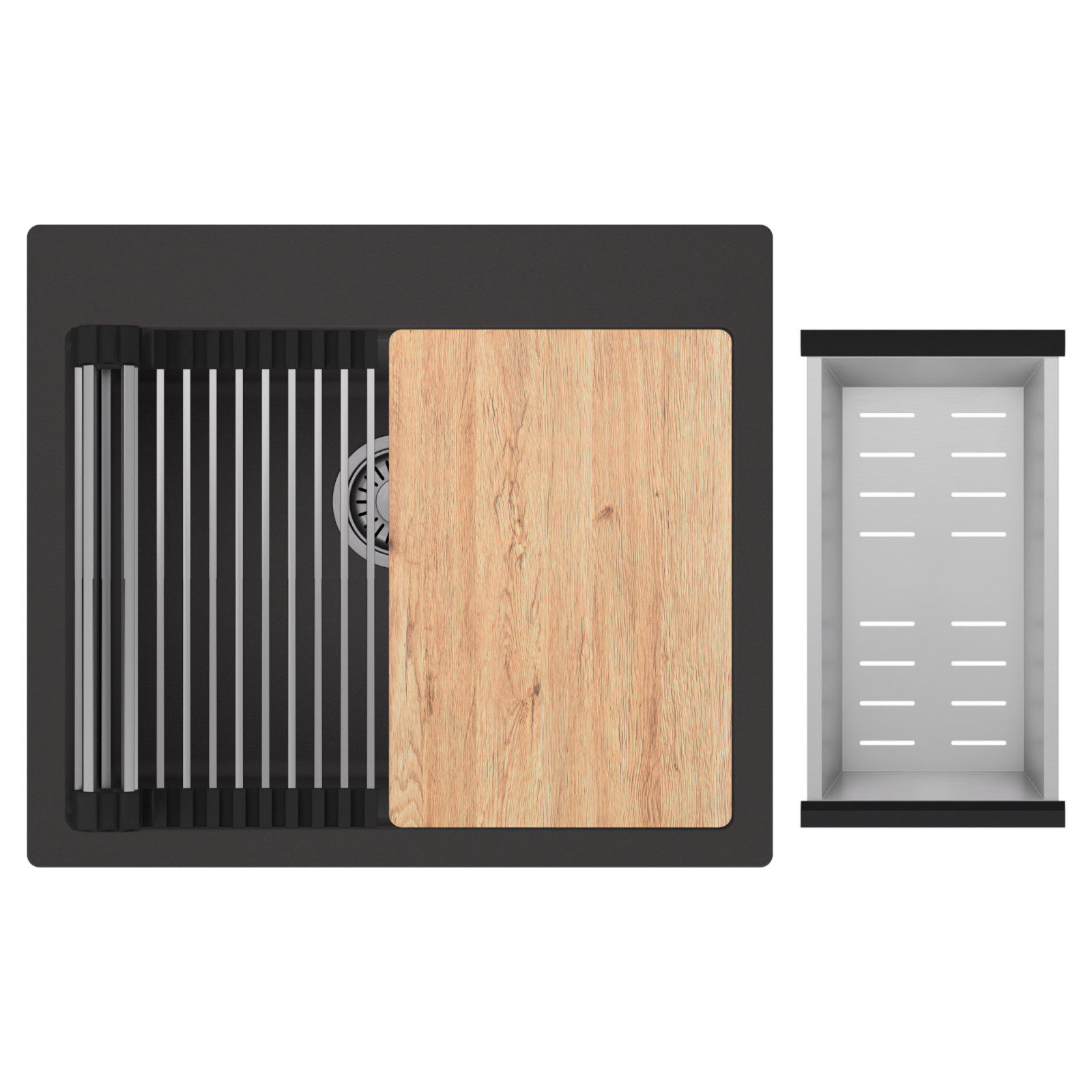 HD Infinity 58 egymedencés mosogatótálca szett, vágódeszkával, csepegtetőráccsal és kosárral, matt antracit