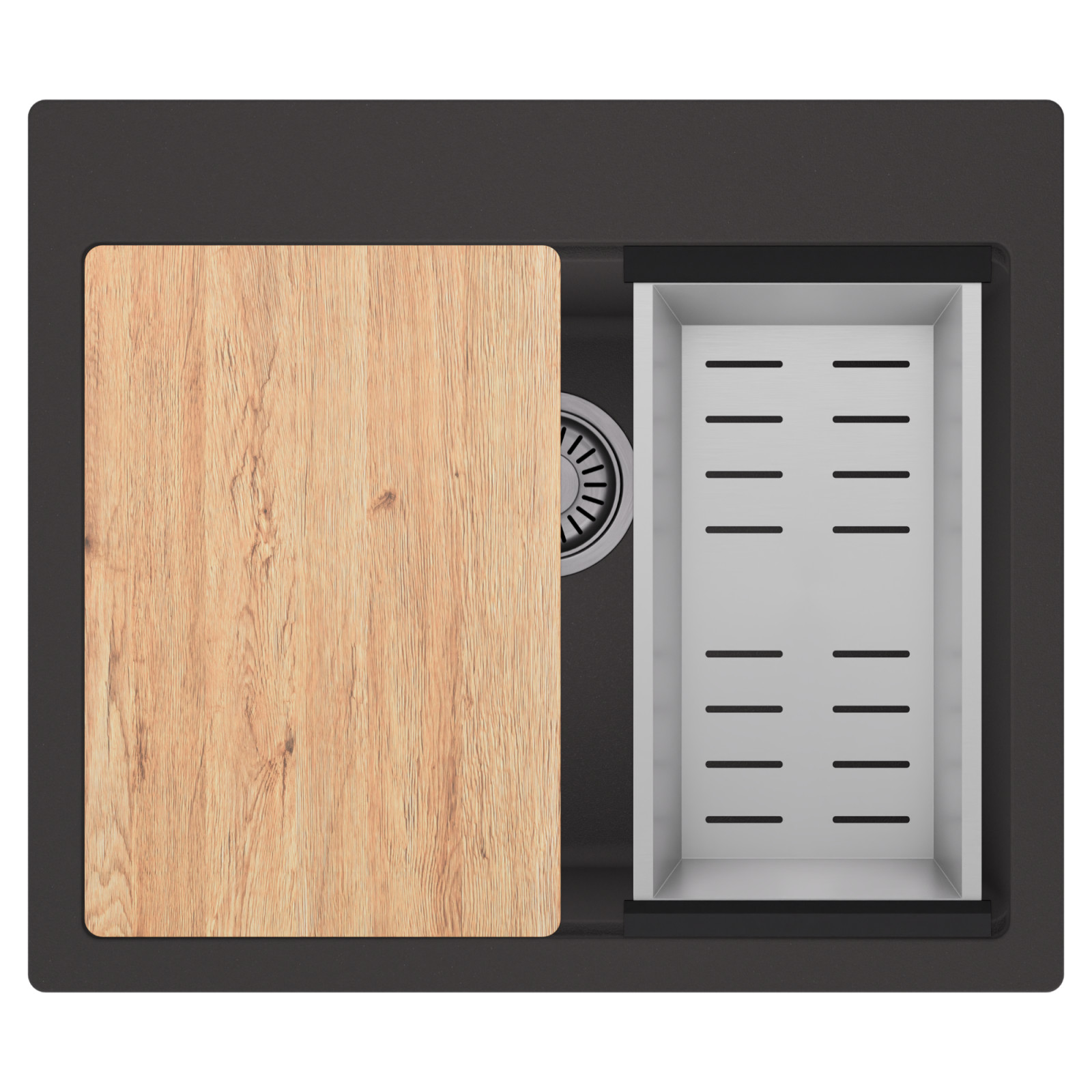 HD Infinity 58 egymedencés mosogatótálca szett, vágódeszkával és csepegtetőkosárral, matt antracit