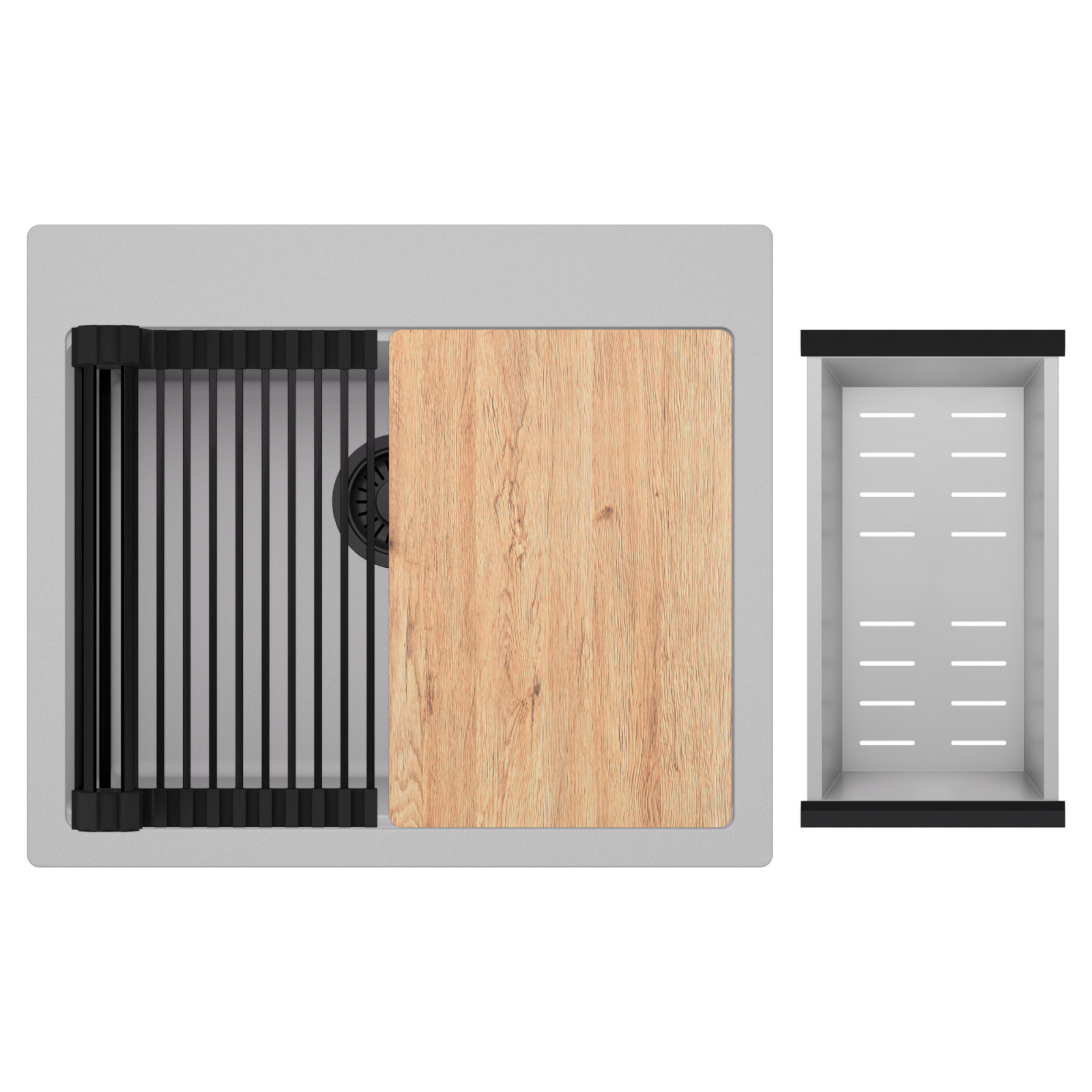HD Infinity Grey 58 egymedencés mosogatótálca szett, vágódeszkával, csepegtetőráccsal és kosárral, alpesi szürke