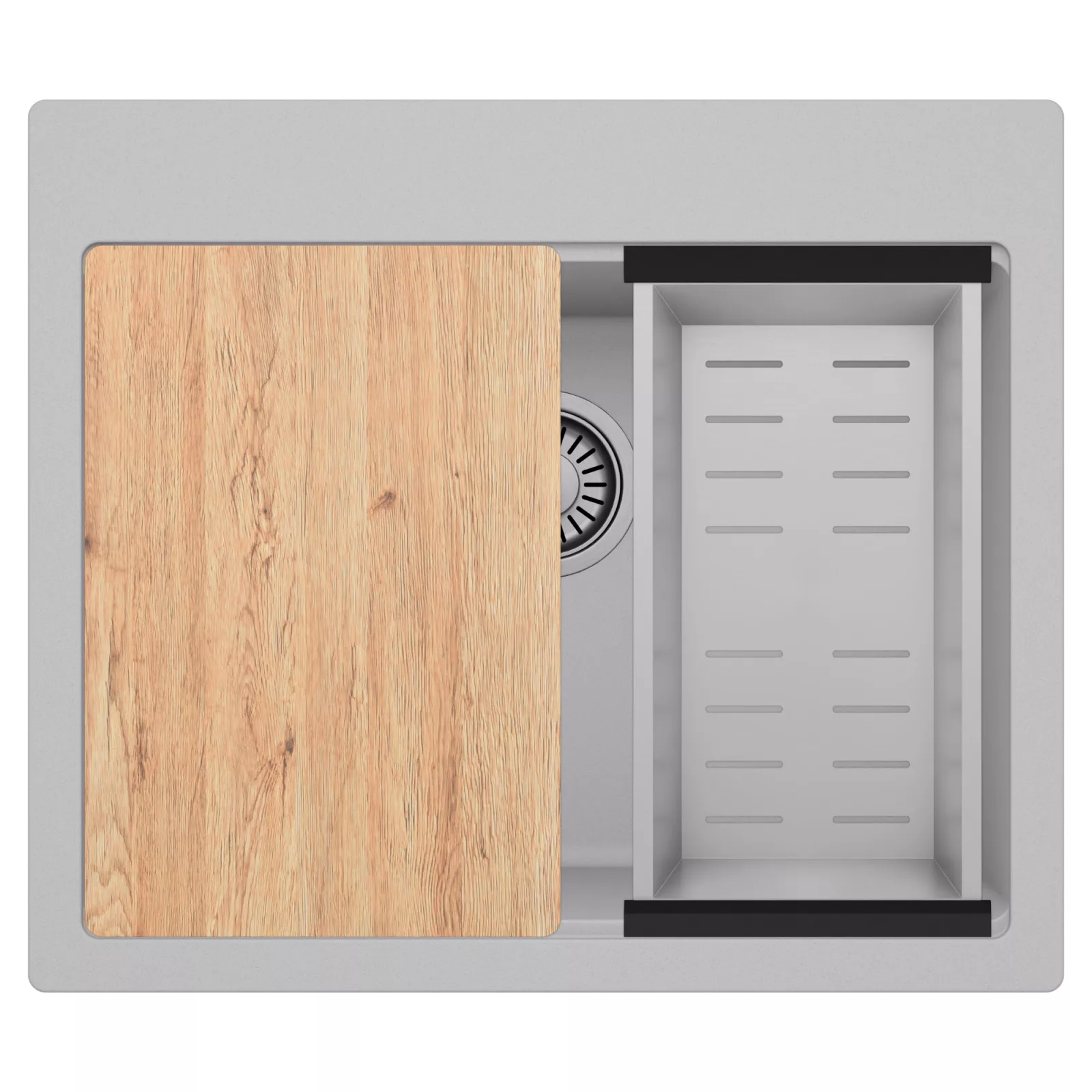 HD Infinity Grey 58 egymedencés mosogatótálca szett, vágódeszkával és csepegtetőkosárral, alpesi szürke