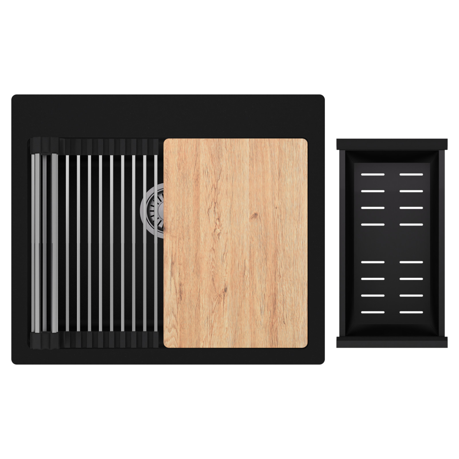 HD Infinity 58 egymedencés mosogatótálca szett, vágódeszkával, csepegtetőráccsal és kosárral, matt fekete