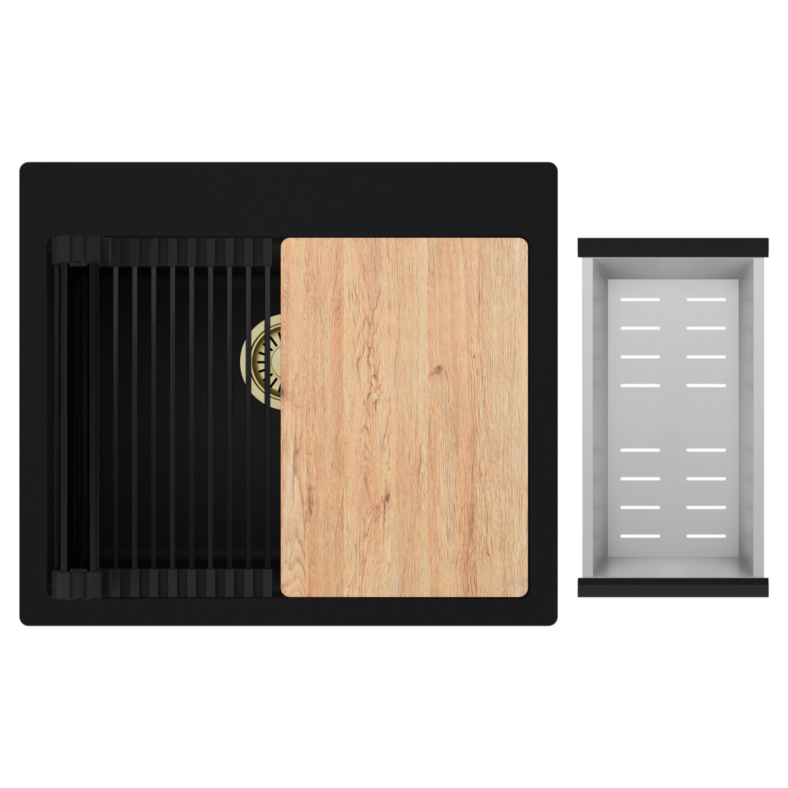 HD Infinity 58 egymedencés mosogatótálca szett, vágódeszkával, csepegtetőráccsal és kosárral, matt fekete