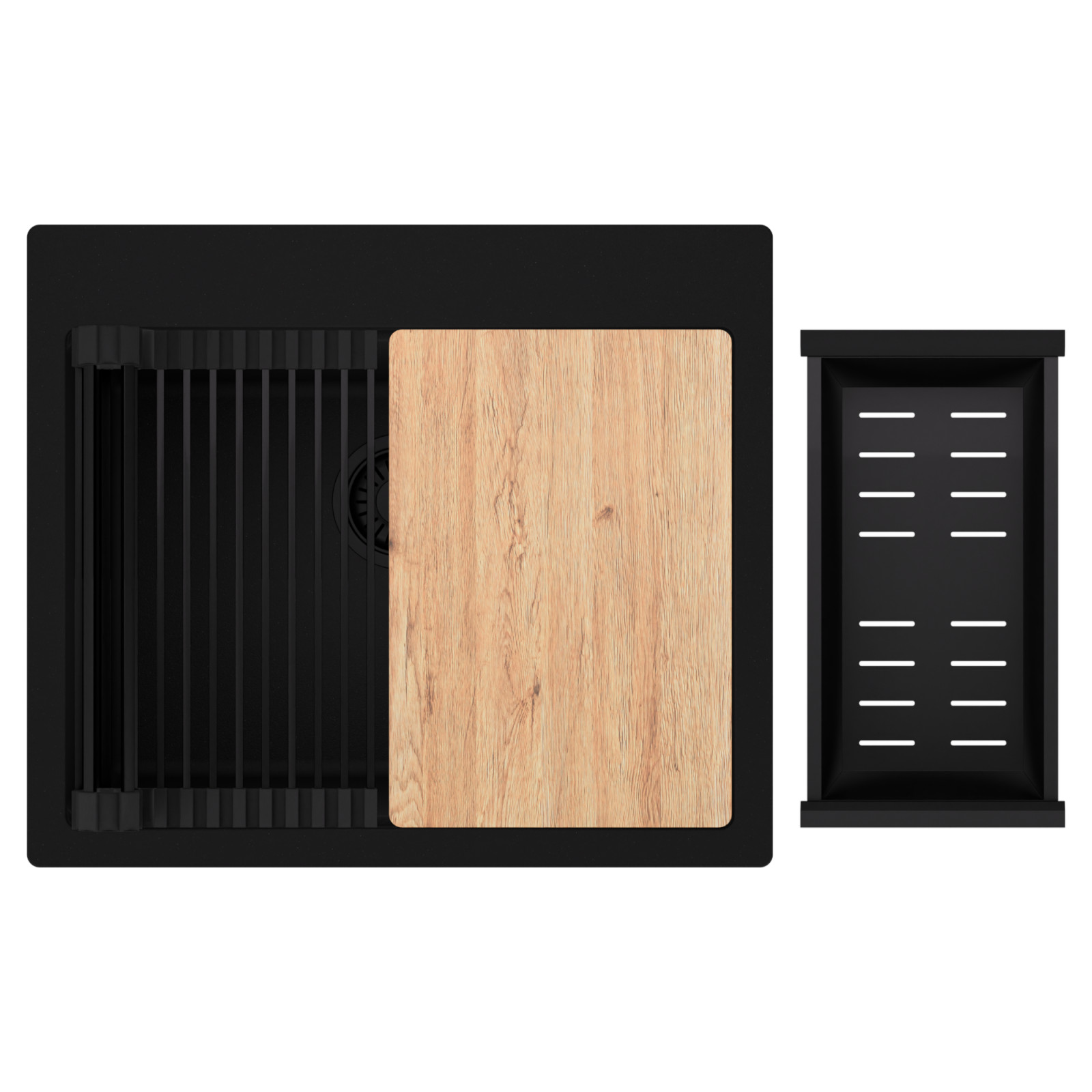HD Infinity 58 egymedencés mosogatótálca szett, vágódeszkával, csepegtetőráccsal és kosárral, matt fekete