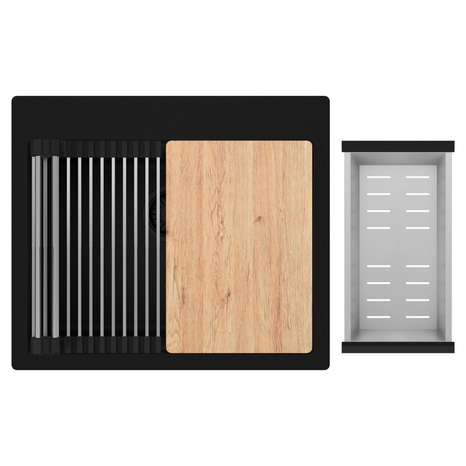 HD Infinity 58 egymedencés mosogatótálca szett, vágódeszkával, csepegtetőráccsal és kosárral, matt fekete