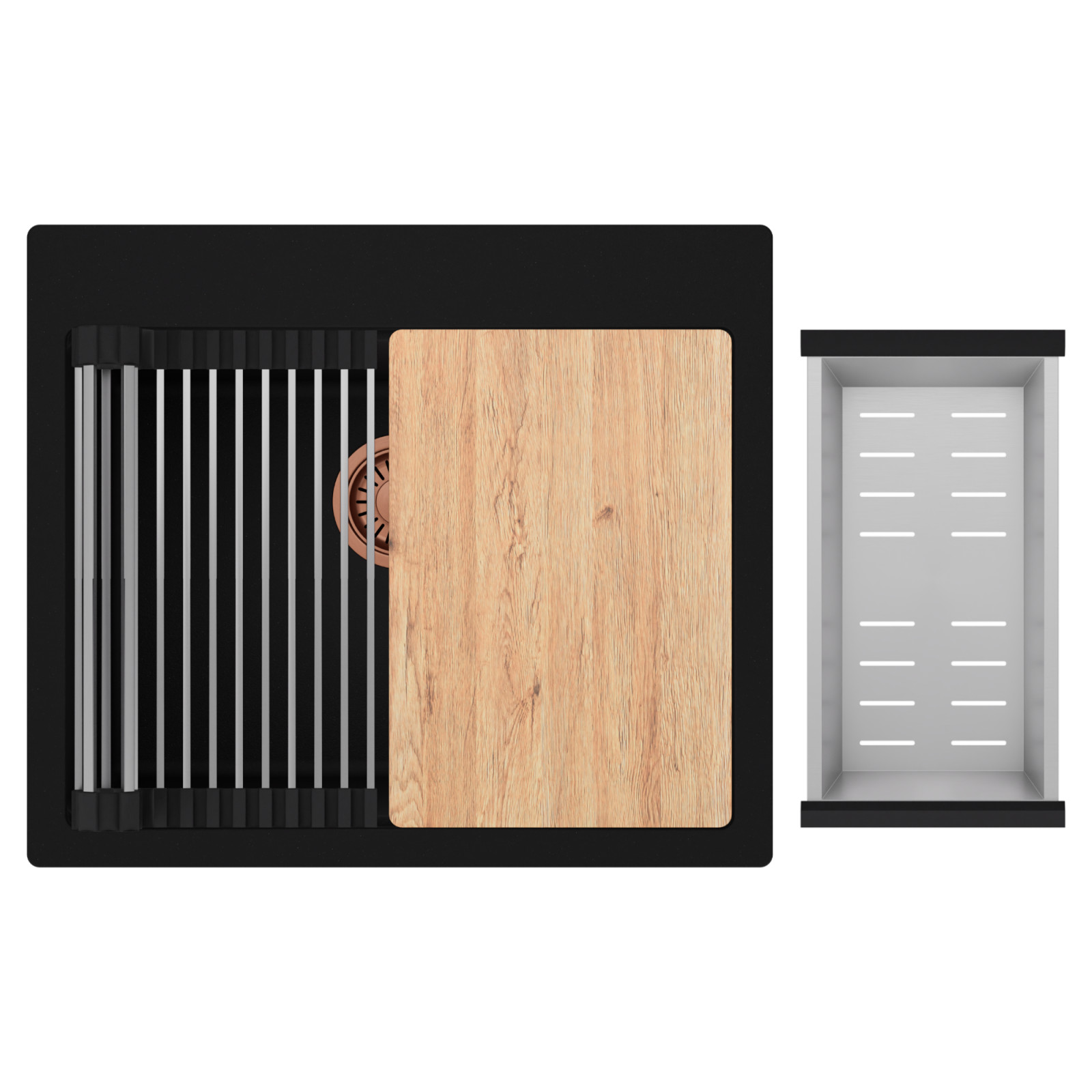 HD Infinity 58 egymedencés mosogatótálca szett, vágódeszkával, csepegtetőráccsal és kosárral, matt fekete