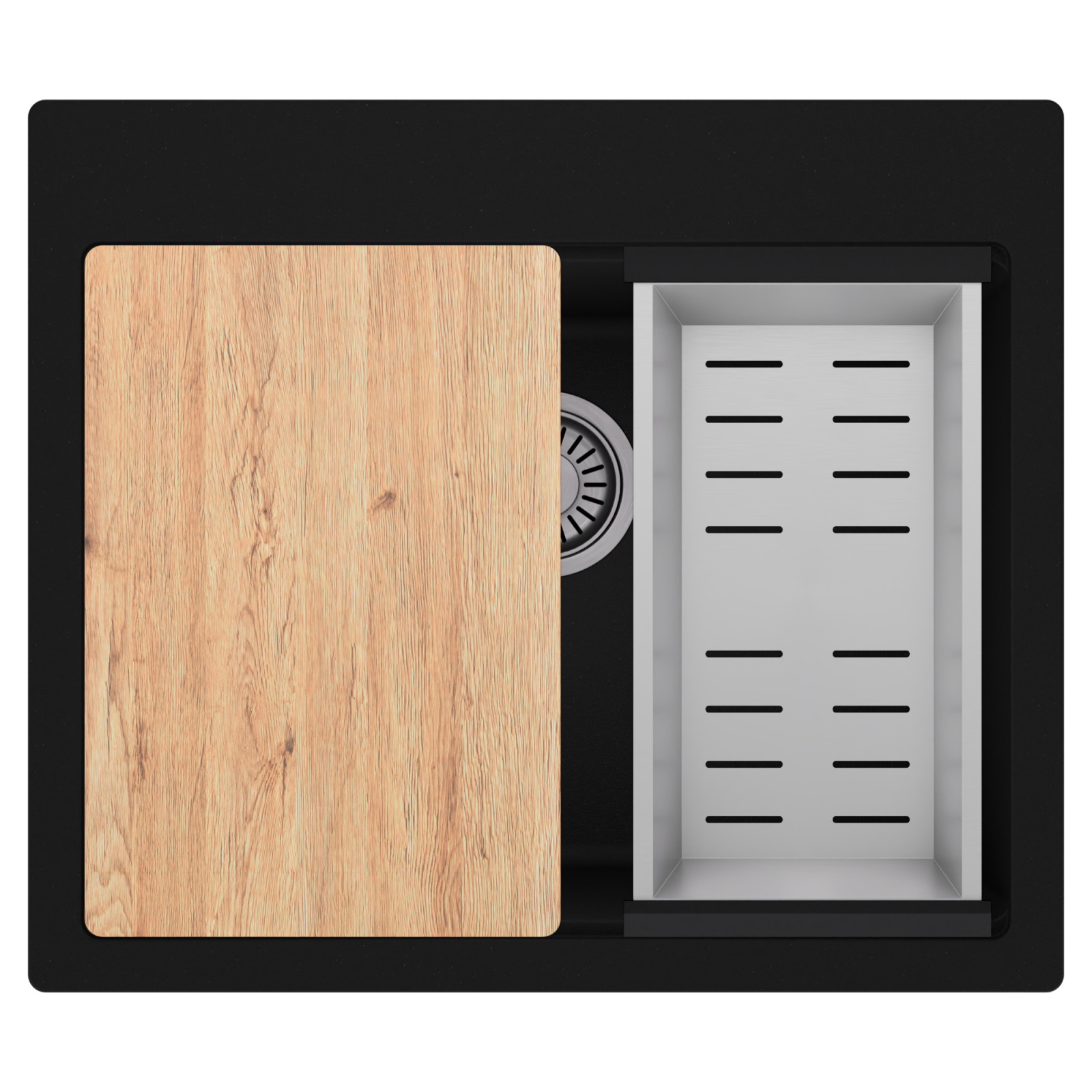 HD Infinity 58 egymedencés mosogatótálca szett, vágódeszkával és csepegtetőkosárral, matt fekete