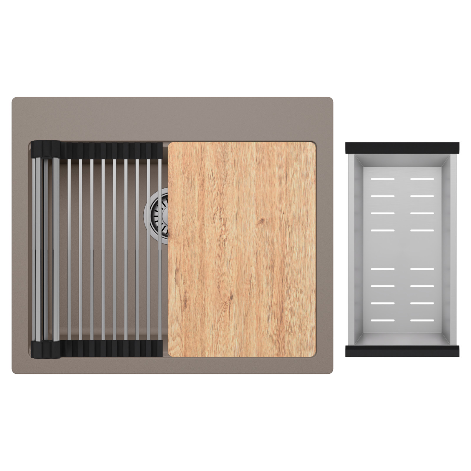 HD Infinity Tortora 58 egymedencés mosogatótálca szett, vágódeszkával, csepegtetőráccsal és kosárral, tortora