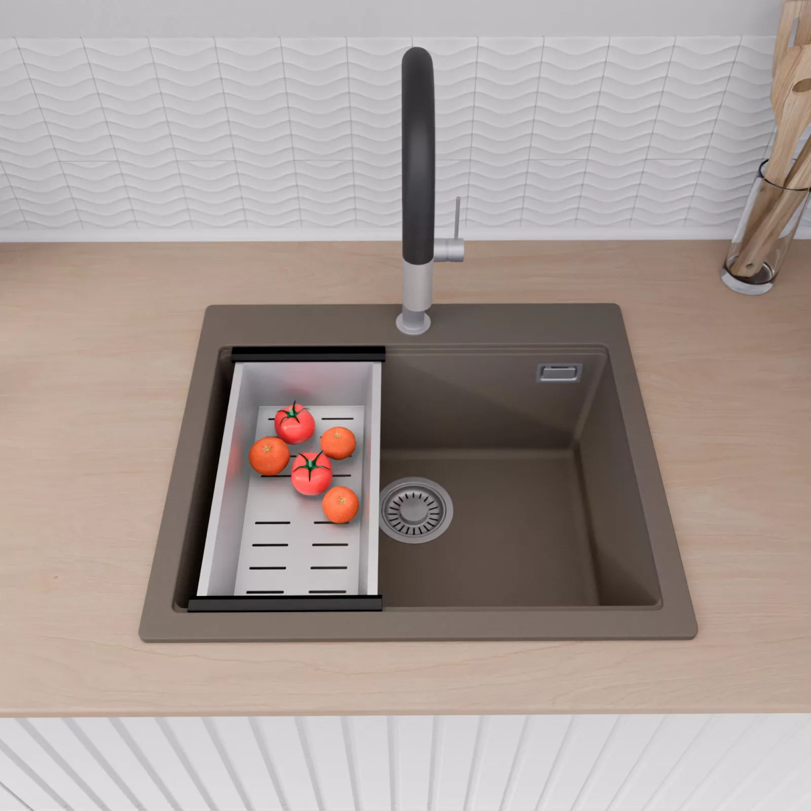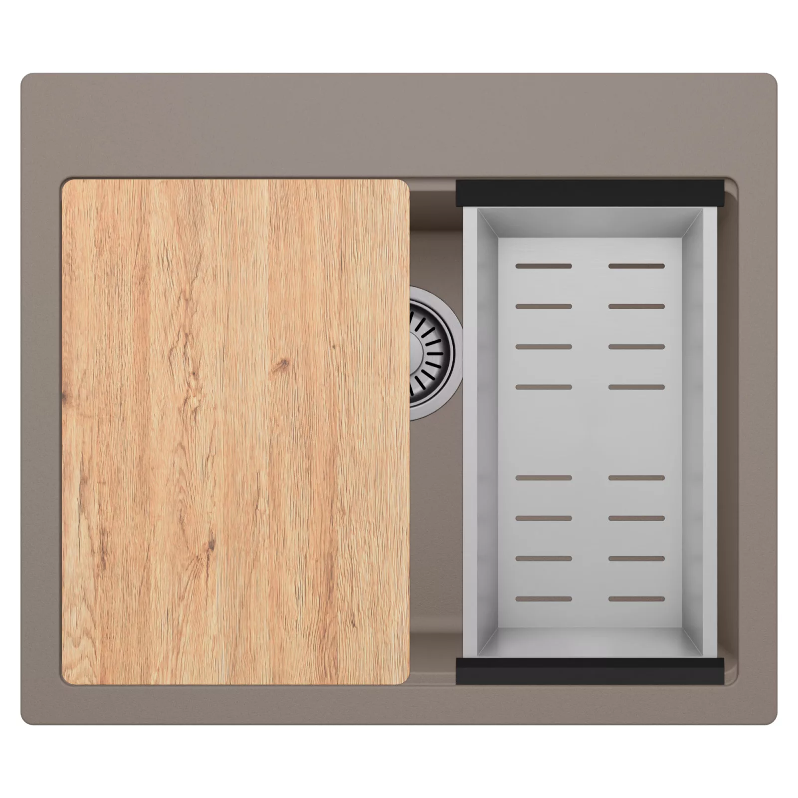 HD Infinity Tortora 58 egymedencés mosogatótálca szett, vágódeszkával és csepegtetőkosárral, tortora