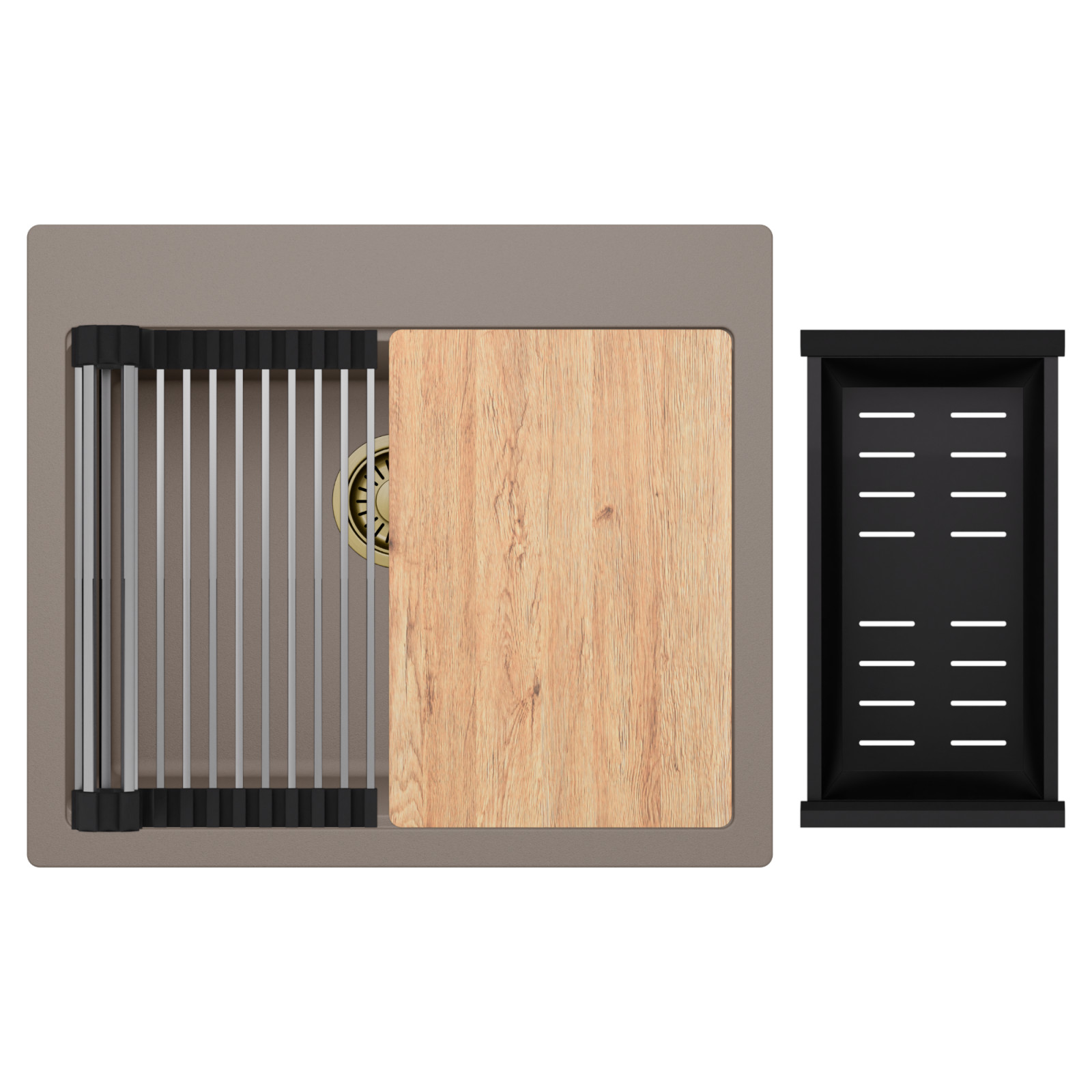 HD Infinity Tortora 58 egymedencés mosogatótálca szett, vágódeszkával, csepegtetőráccsal és kosárral, tortora