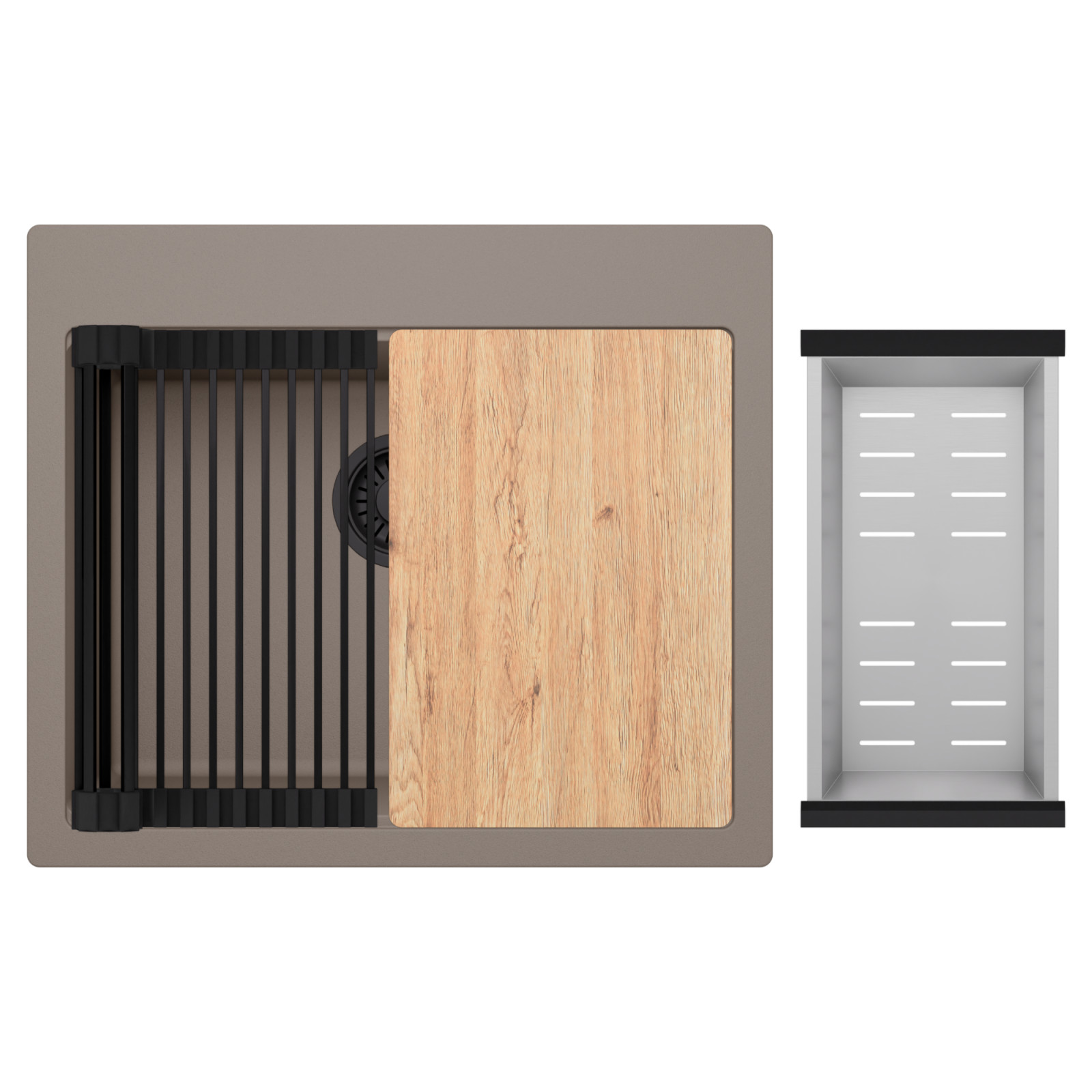 HD Infinity Tortora 58 egymedencés mosogatótálca szett, vágódeszkával, csepegtetőráccsal és kosárral, tortora