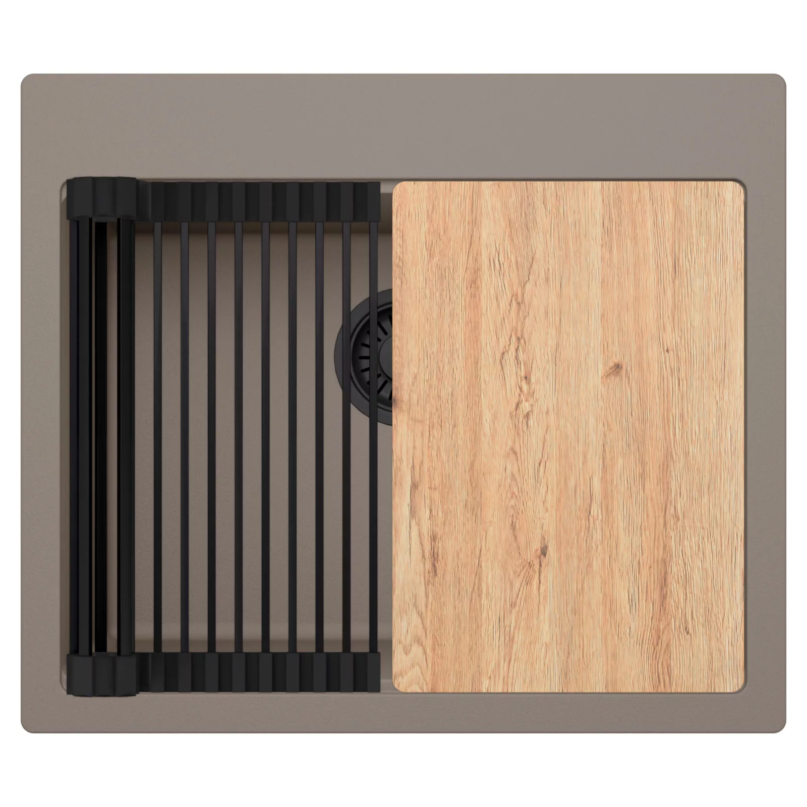 HD Infinity Tortora 58 egymedencés mosogatótálca szett, vágódeszkával és csepegtetőráccsal, tortora