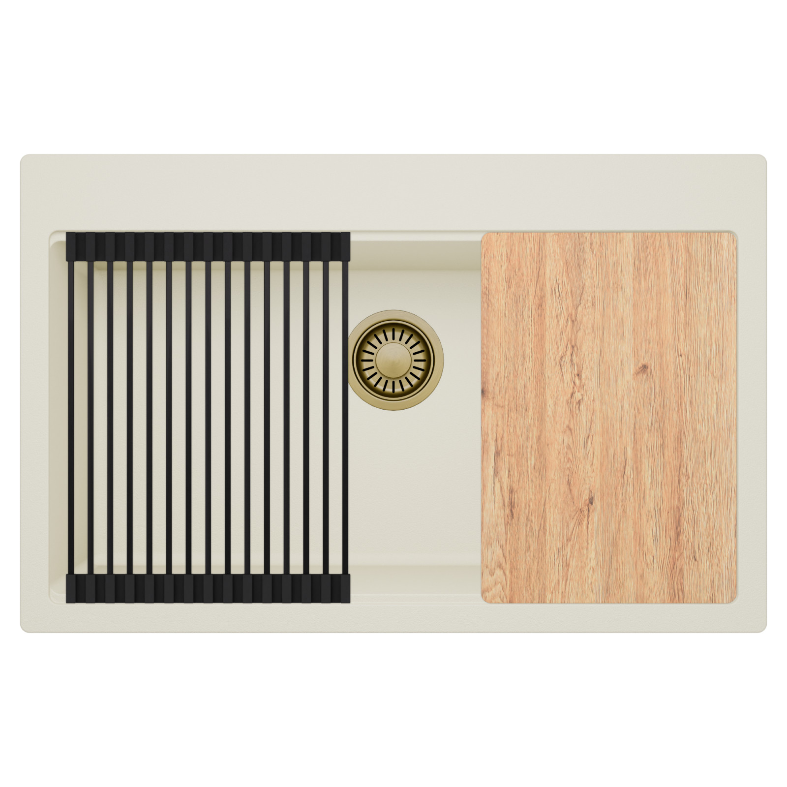 HD Infinity White 78 egymedencés mosogatótálca szett, vágódeszkával és csepegtetőráccsal, tört fehér