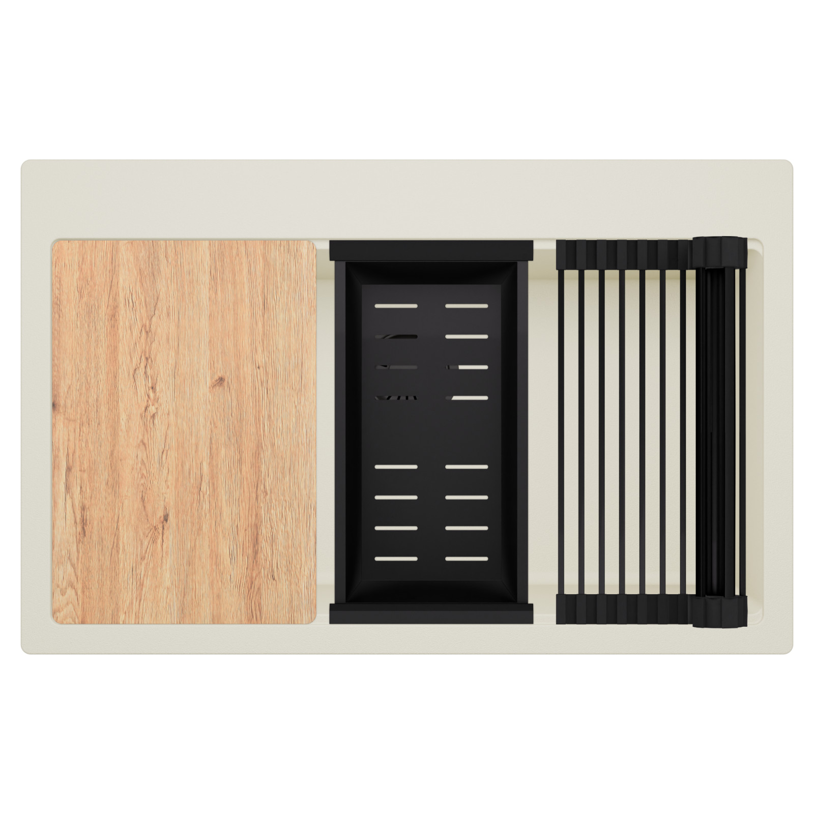 HD Infinity White 78 egymedencés mosogatótálca szett, vágódeszkával, csepegtetőráccsal és kosárral, tört fehér
