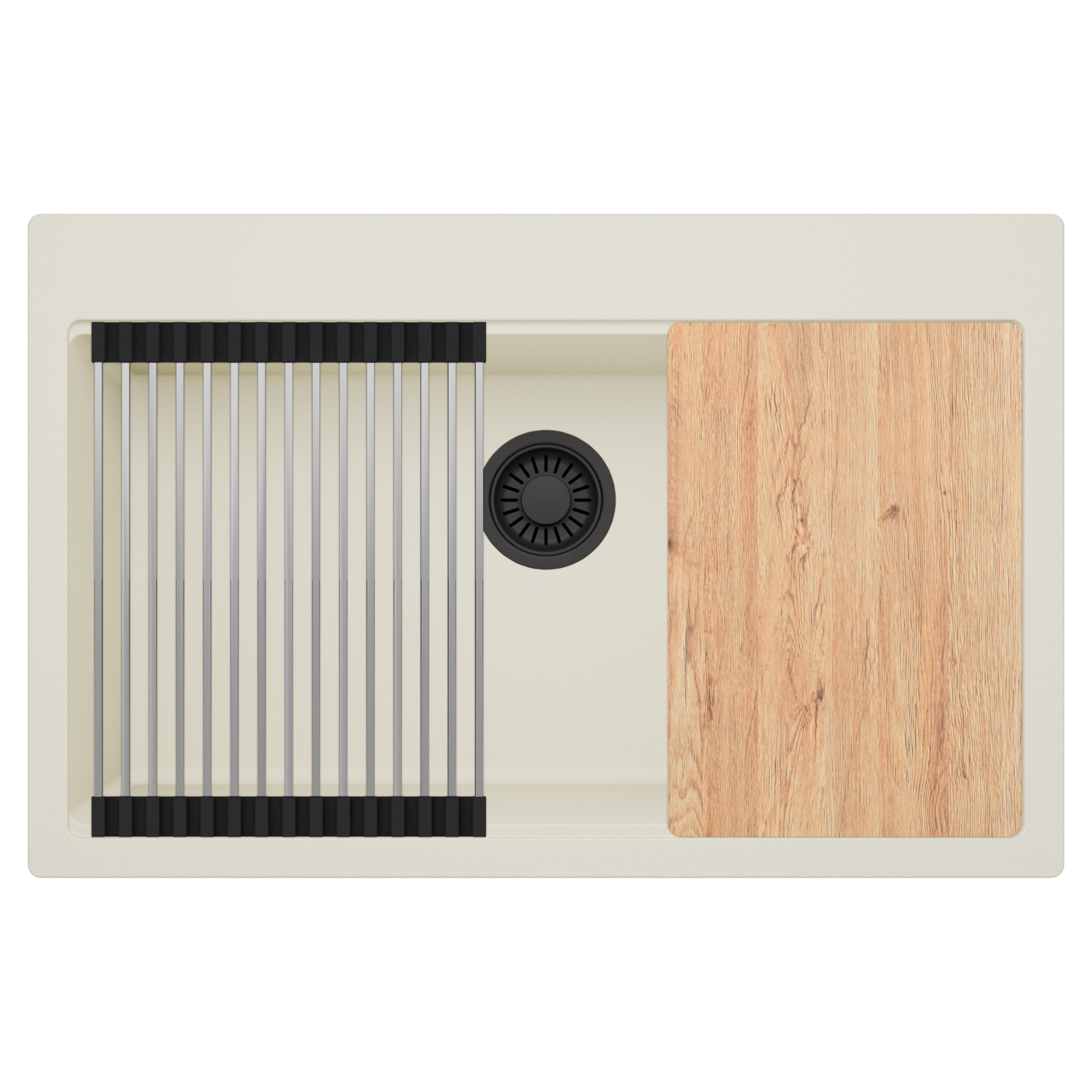 HD Infinity White 78 egymedencés mosogatótálca szett, vágódeszkával és csepegtetőráccsal, tört fehér