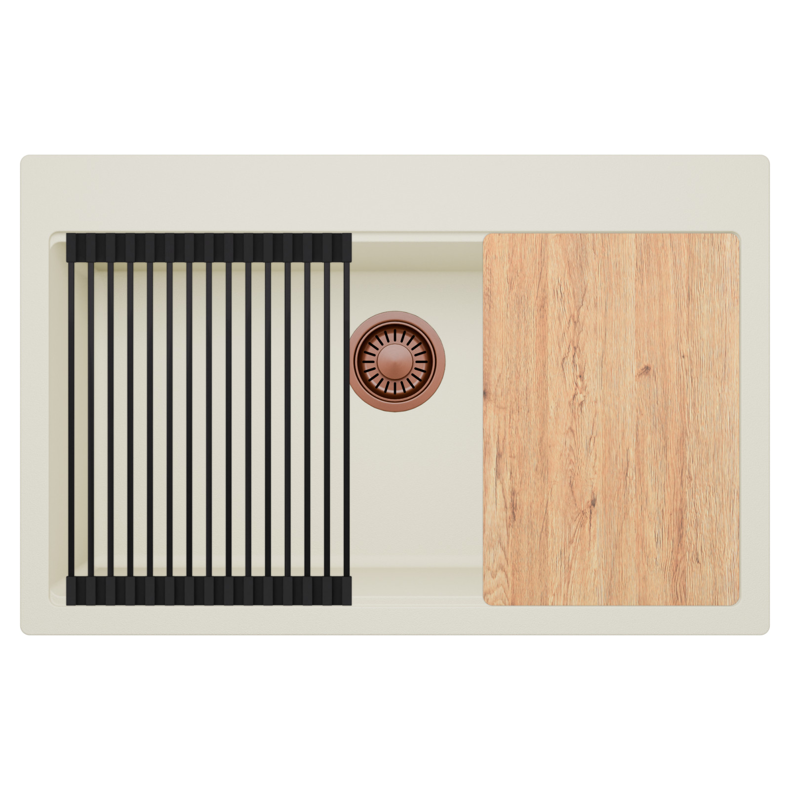 HD Infinity White 78 egymedencés mosogatótálca szett, vágódeszkával és csepegtetőráccsal, tört fehér