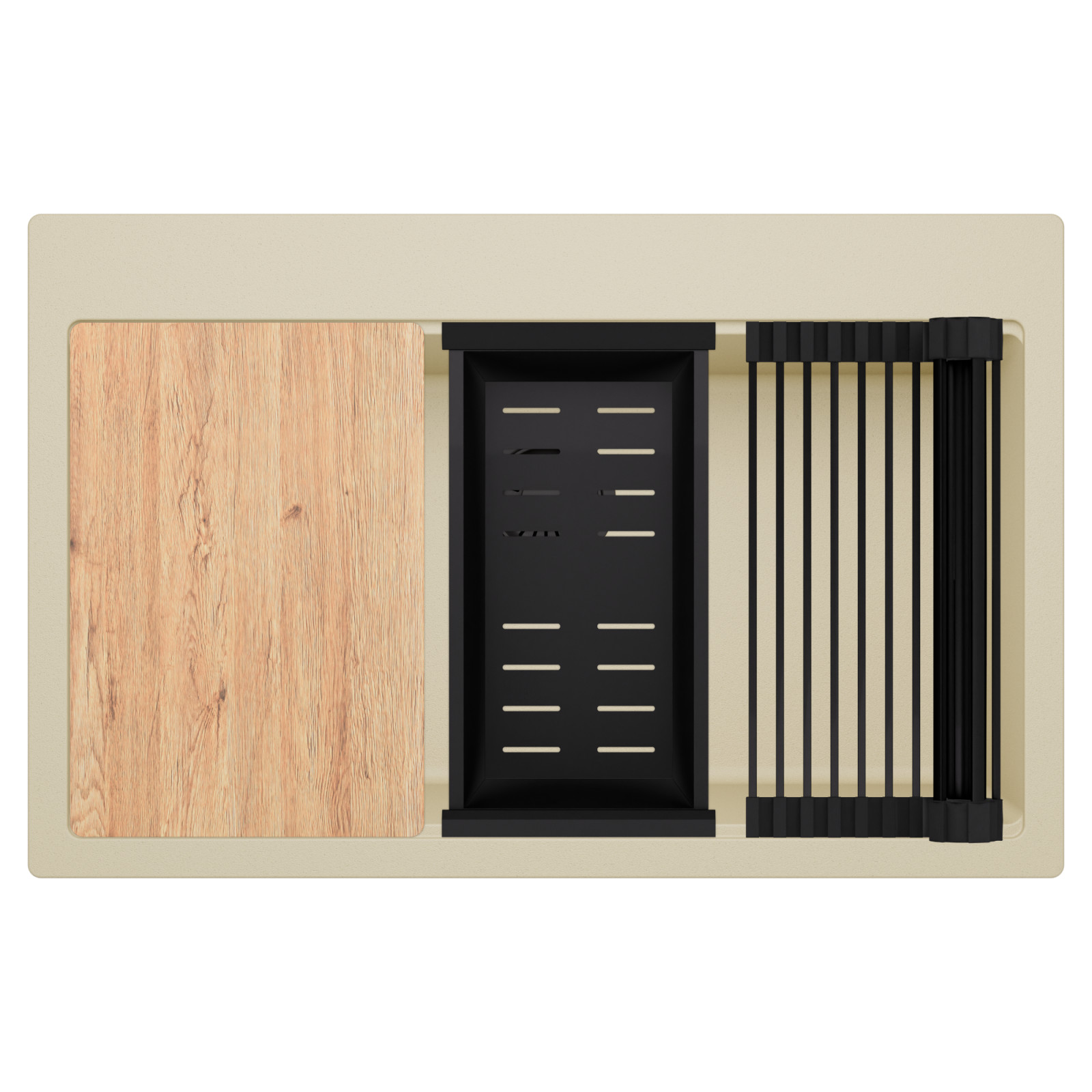 HD Infinity Beige 78 egymedencés mosogatótálca szett, vágódeszkával, csepegtetőráccsal és kosárral, soft bézs