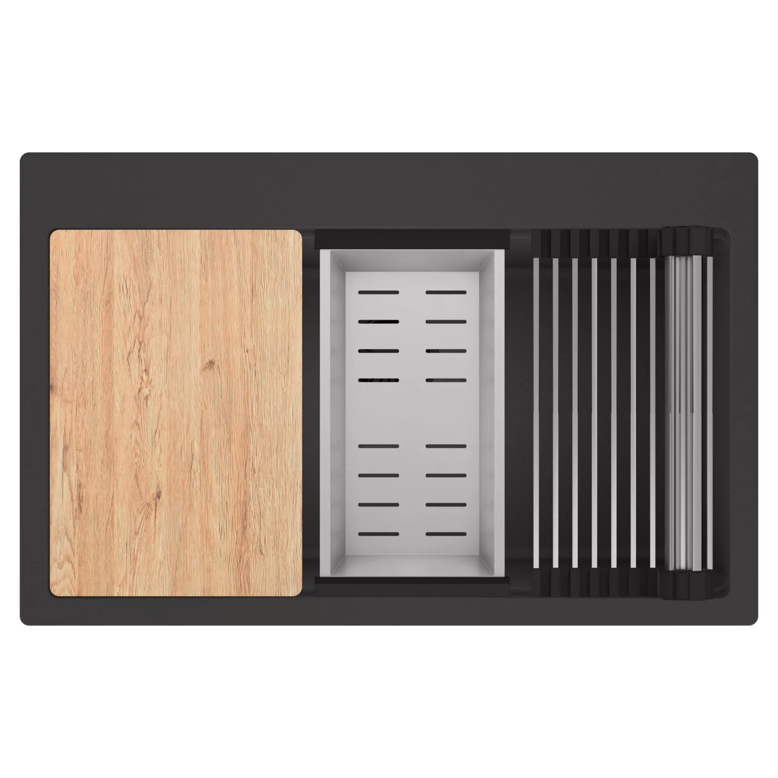HD Infinity 78 egymedencés mosogatótálca szett, vágódeszkával, csepegtetőráccsal és kosárral, matt antracit