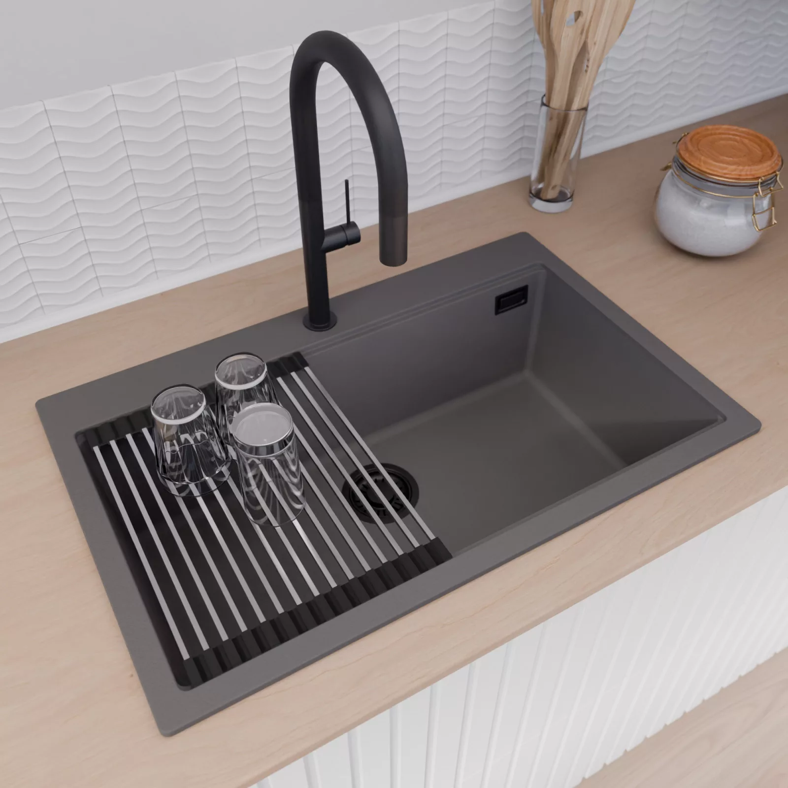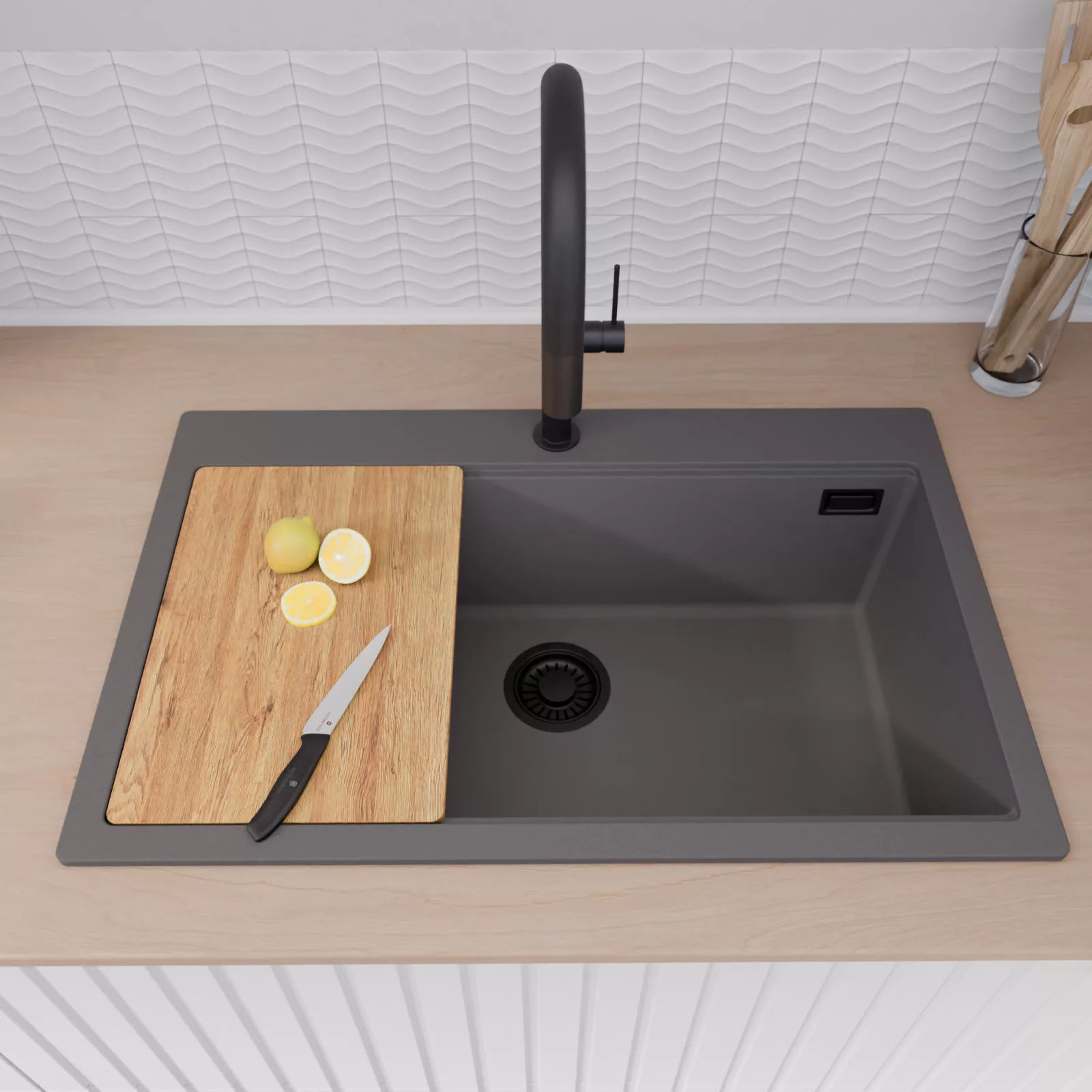 A mosogató prémium minőségű gránit kompozitból készült. Letisztult megjelenése mellett rendkívül praktikus, így bármilyen stílusú konyhába harmonikusan illeszkedik. A strapabíró gránit anyag hosszú távon is megbízható használatot garantál.
