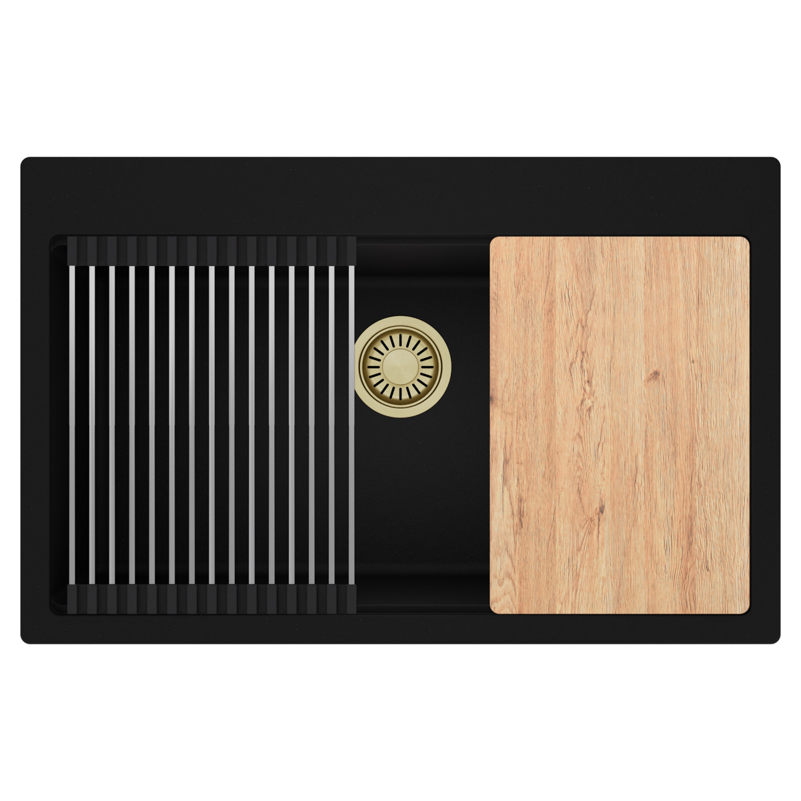 HD Infinity 78 egymedencés mosogatótálca szett, vágódeszkával és csepegtetőráccsal, matt fekete