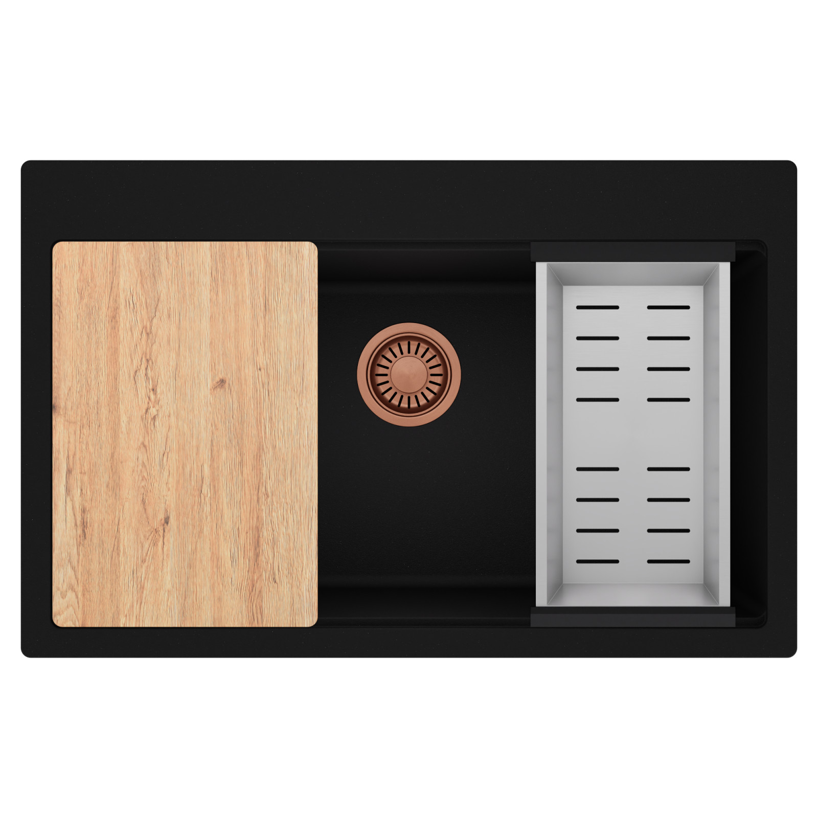 Mosogatónk magas természetes kőőrlemény-tartalmú gránit kompozitból készül, amely rendkívüli stabilitást és tartósságot biztosít. Az anyag ellenáll a magas hőmérsékletnek, a hirtelen hőingadozásoknak, valamint az ütéseknek és karcolásoknak is. Sima, zárt felülete könnyen tisztán tartható, ellenáll a foltosodásnak és az elszíneződéseknek, így hosszú éveken át megőrzi esztétikus megjelenését. Meggyőződésünk, hogy ezzel a gránit mosogatóval a mindennapi konyhai teendők kényelmesebbé és élvezetesebbé válnak.