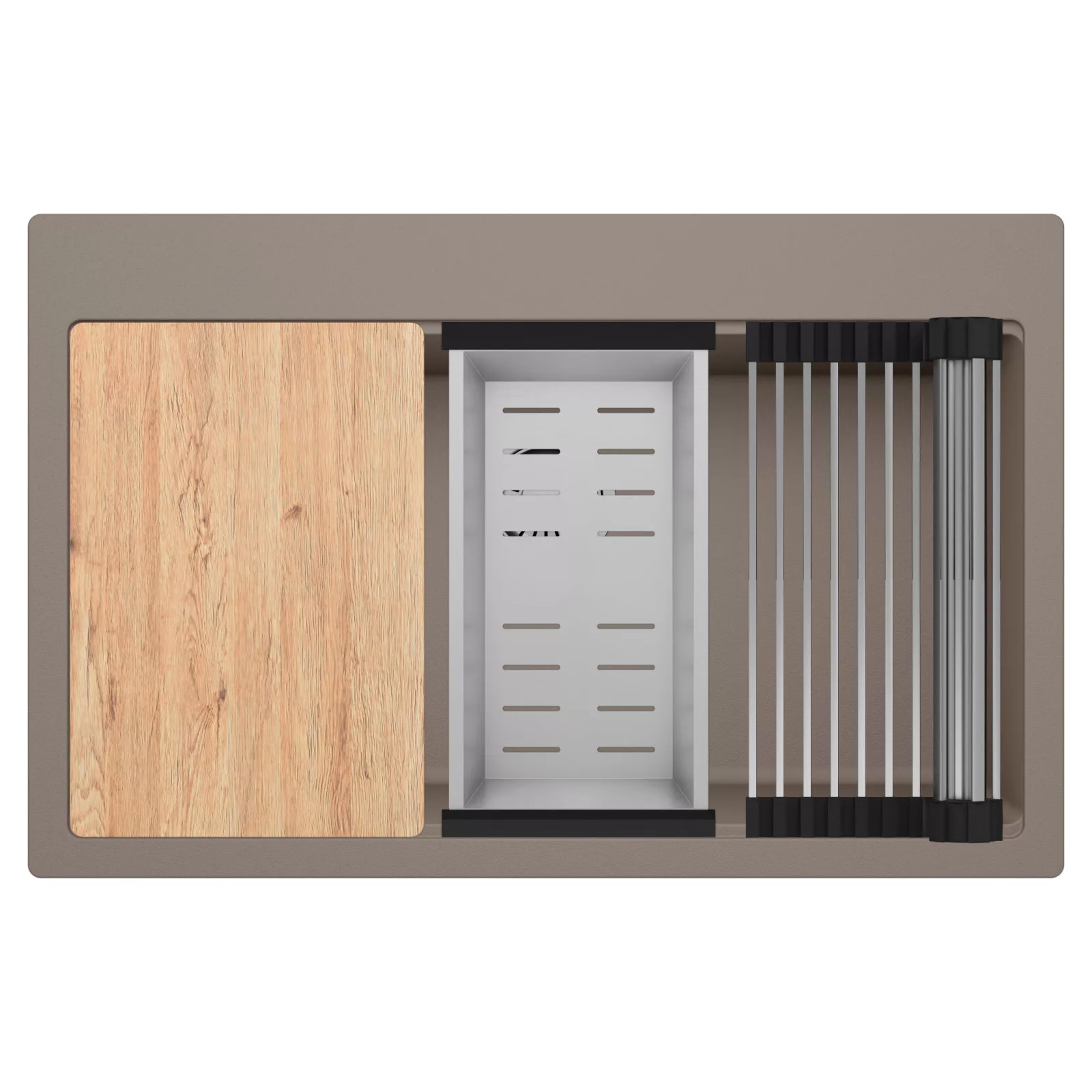HD Infinity Tortora 78 egymedencés mosogatótálca szett, vágódeszkával, csepegtetőráccsal és kosárral, tortora