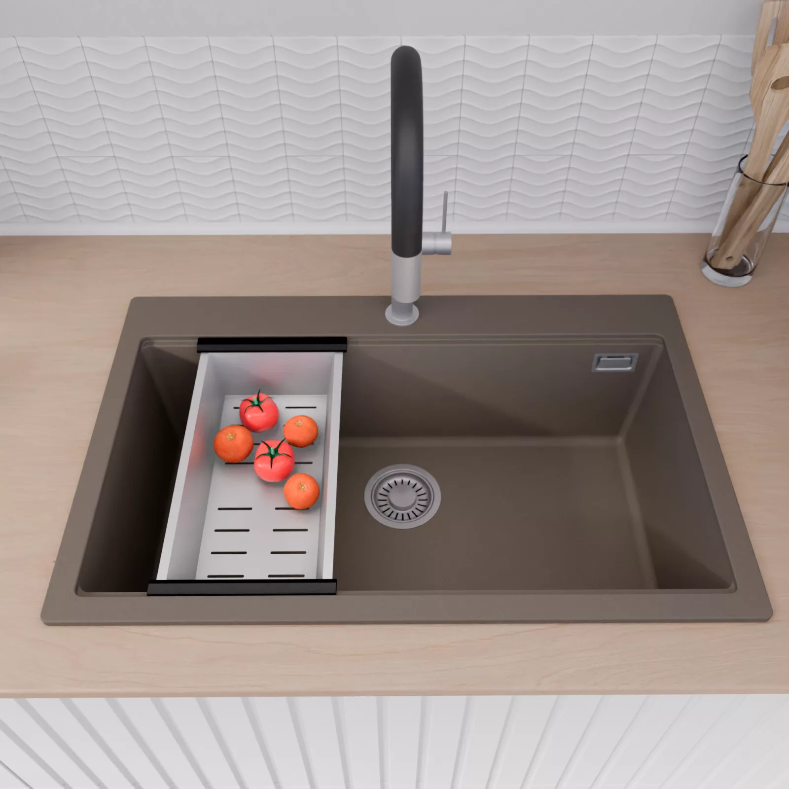 A mosogató prémium minőségű gránit kompozitból készült. Letisztult megjelenése mellett rendkívül praktikus, így bármilyen stílusú konyhába harmonikusan illeszkedik. A strapabíró gránit anyag hosszú távon is megbízható használatot garantál.