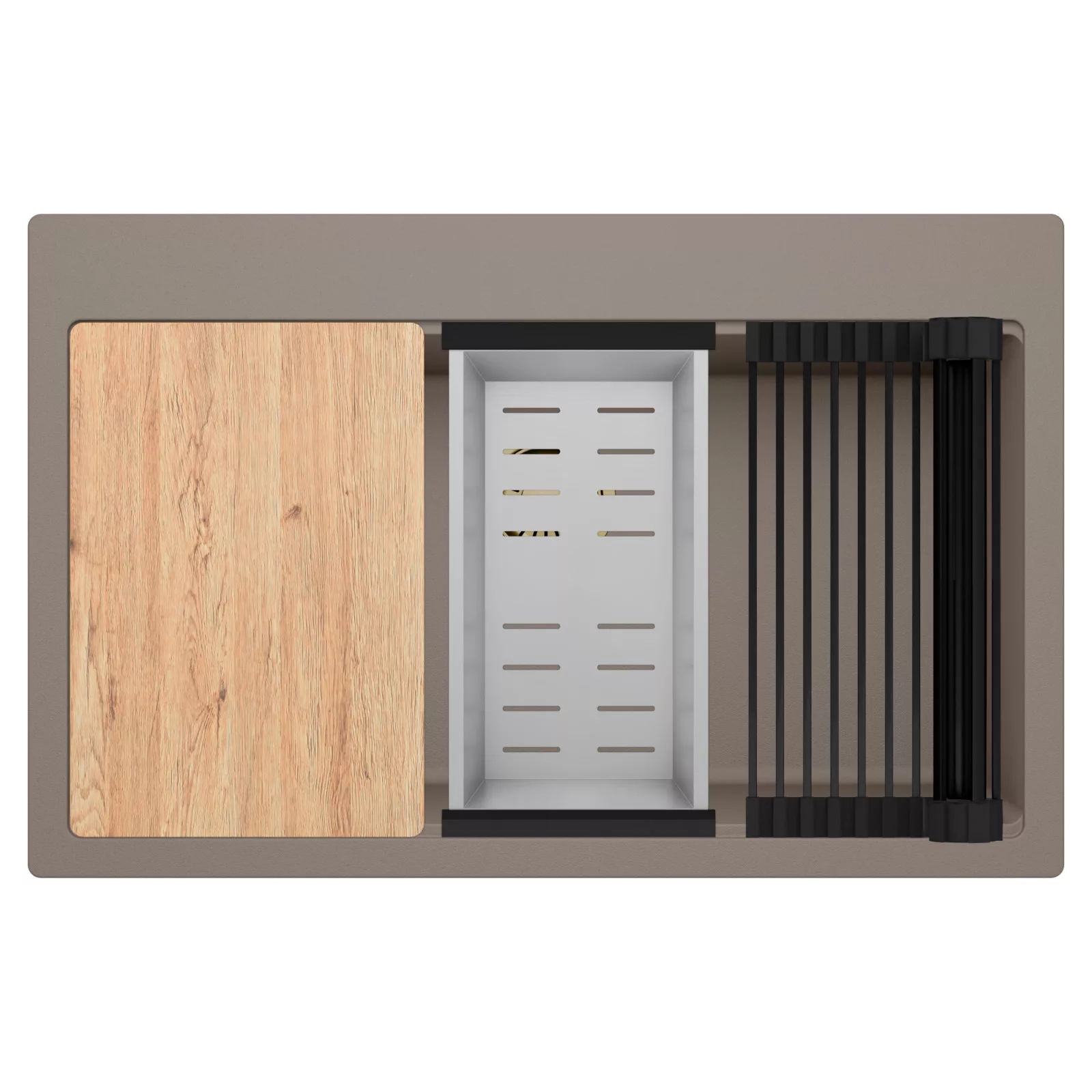 HD Infinity Tortora 78 egymedencés mosogatótálca szett, vágódeszkával, csepegtetőráccsal és kosárral, tortora
