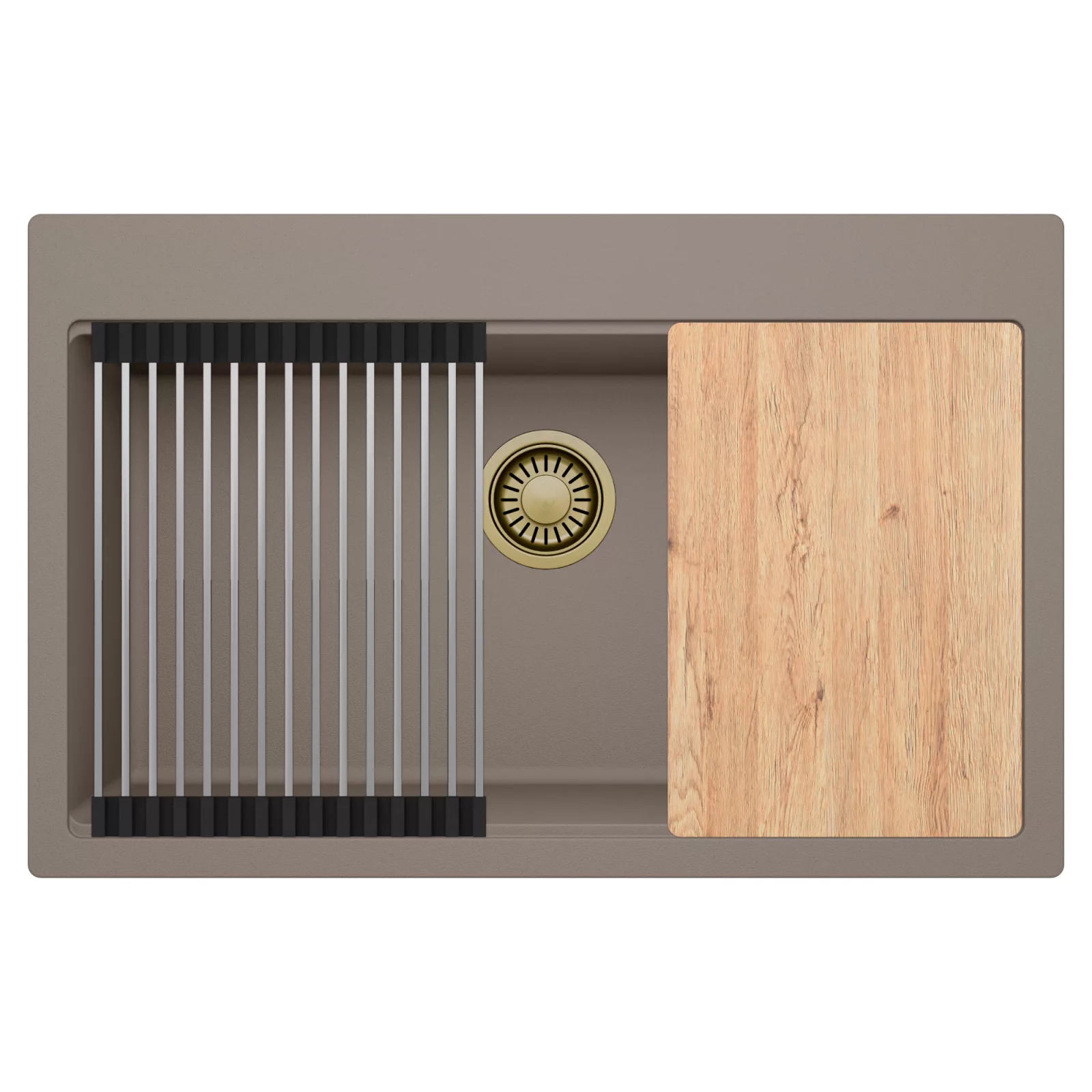 HD Infinity Tortora 78 egymedencés mosogatótálca szett, vágódeszkával és csepegtetőráccsal, tortora