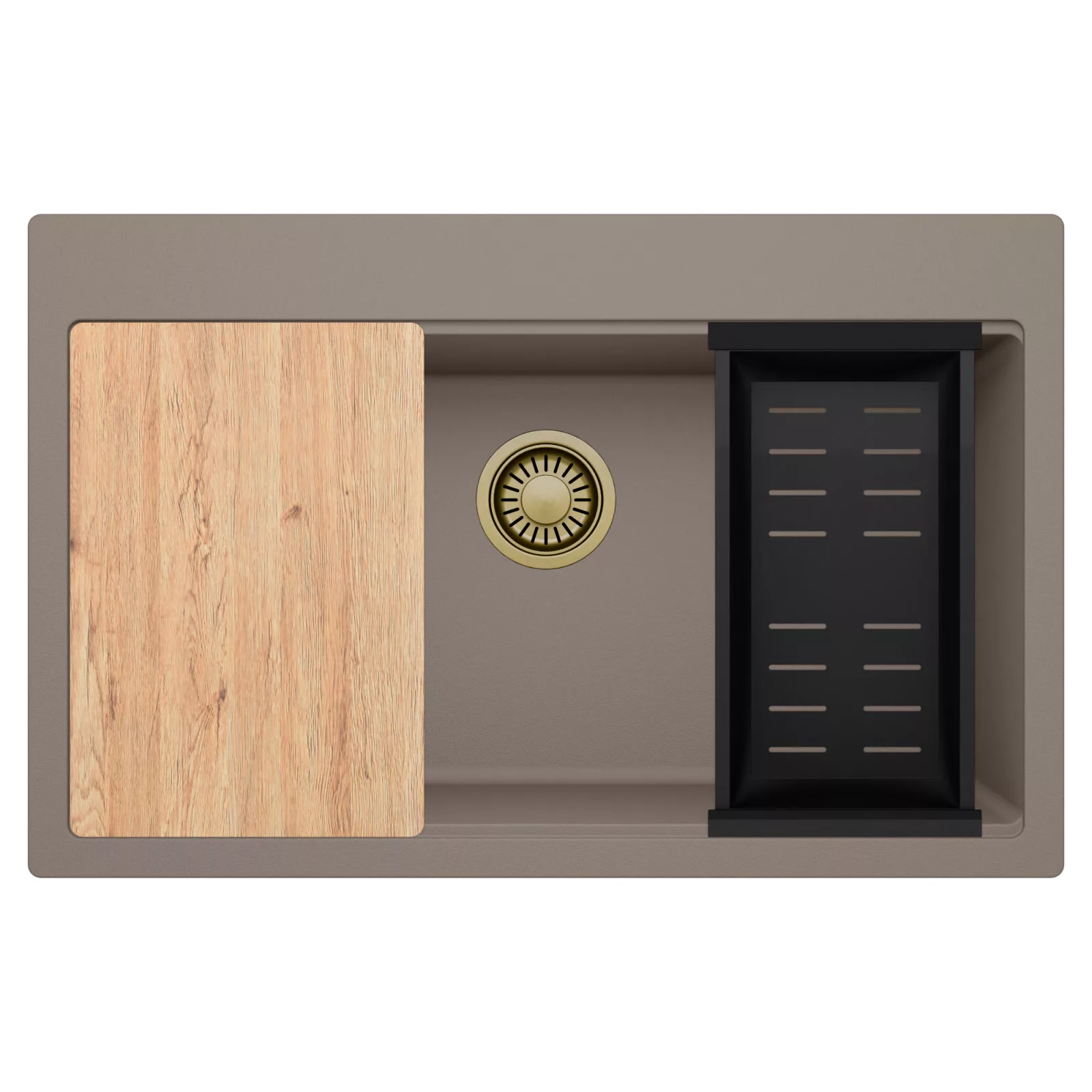 HD Infinity Tortora 78 egymedencés mosogatótálca szett, vágódeszkával és csepegtetőkosárral, tortora