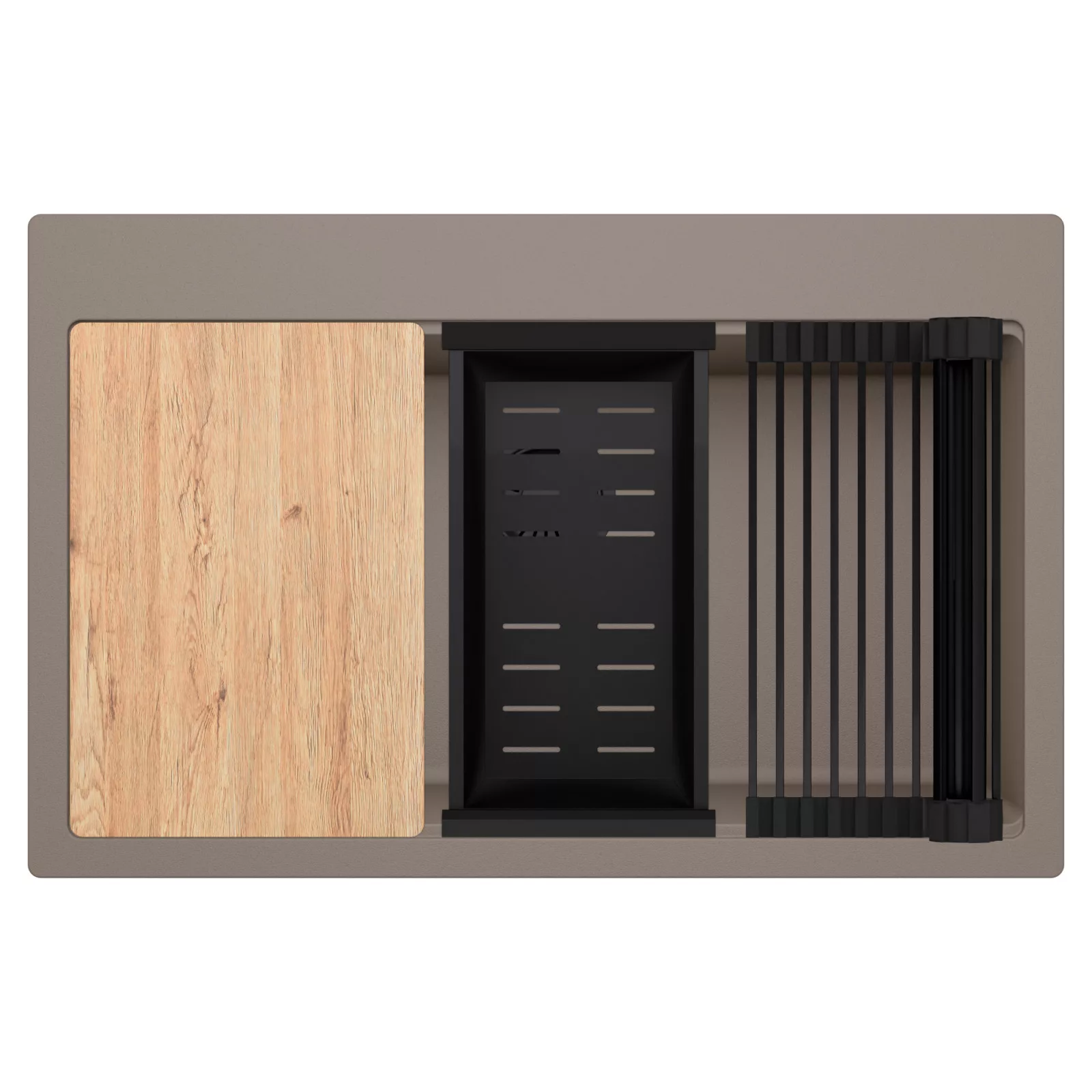 HD Infinity Tortora 78 egymedencés mosogatótálca szett, vágódeszkával, csepegtetőráccsal és kosárral, tortora