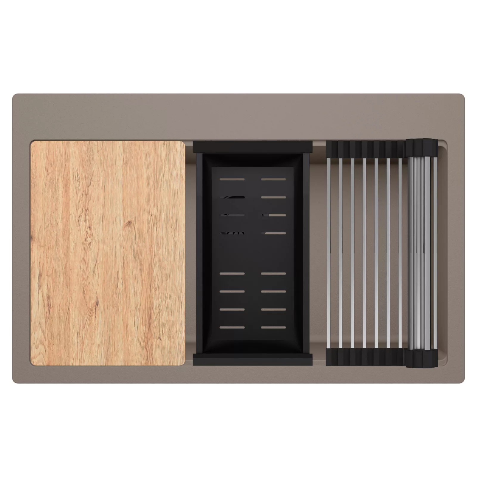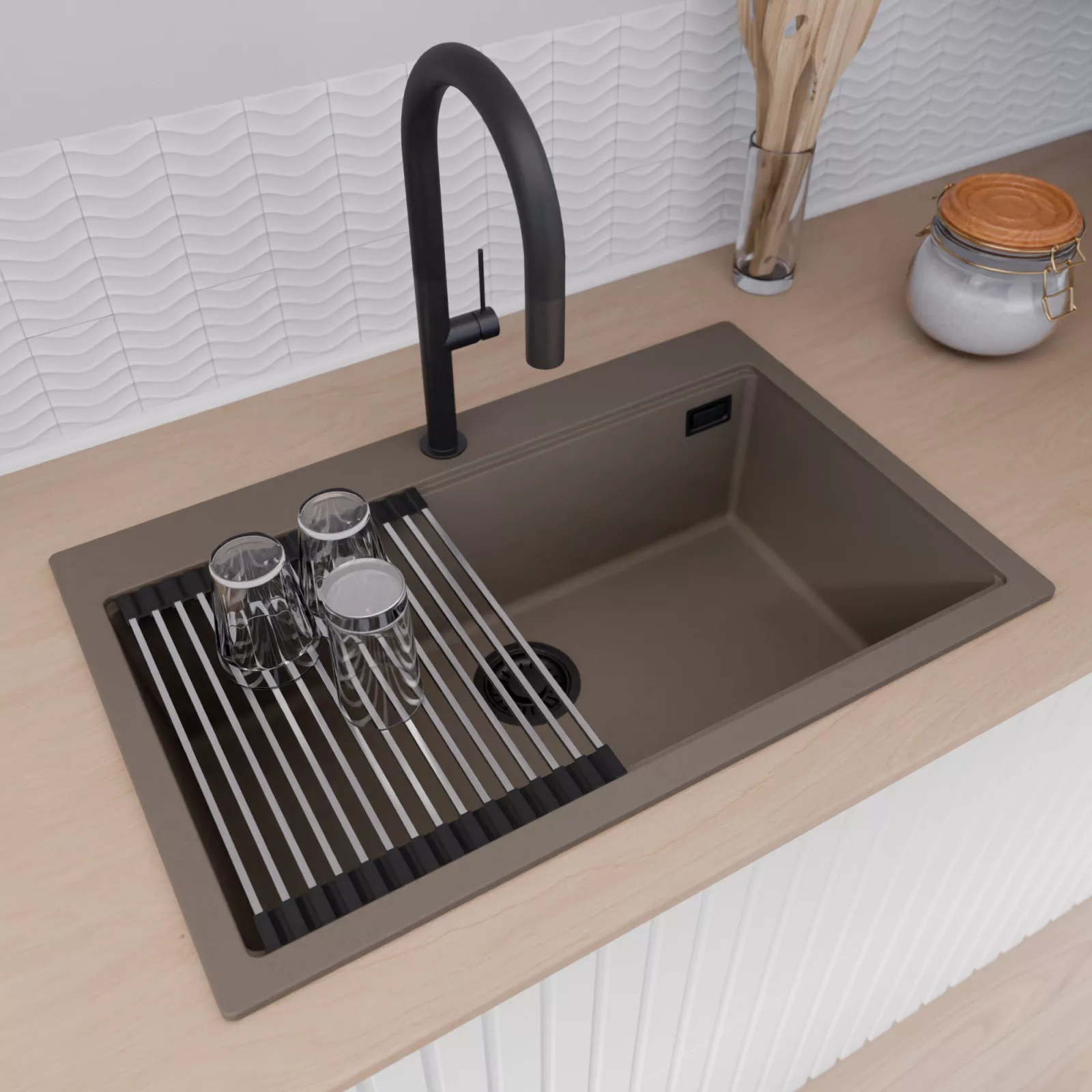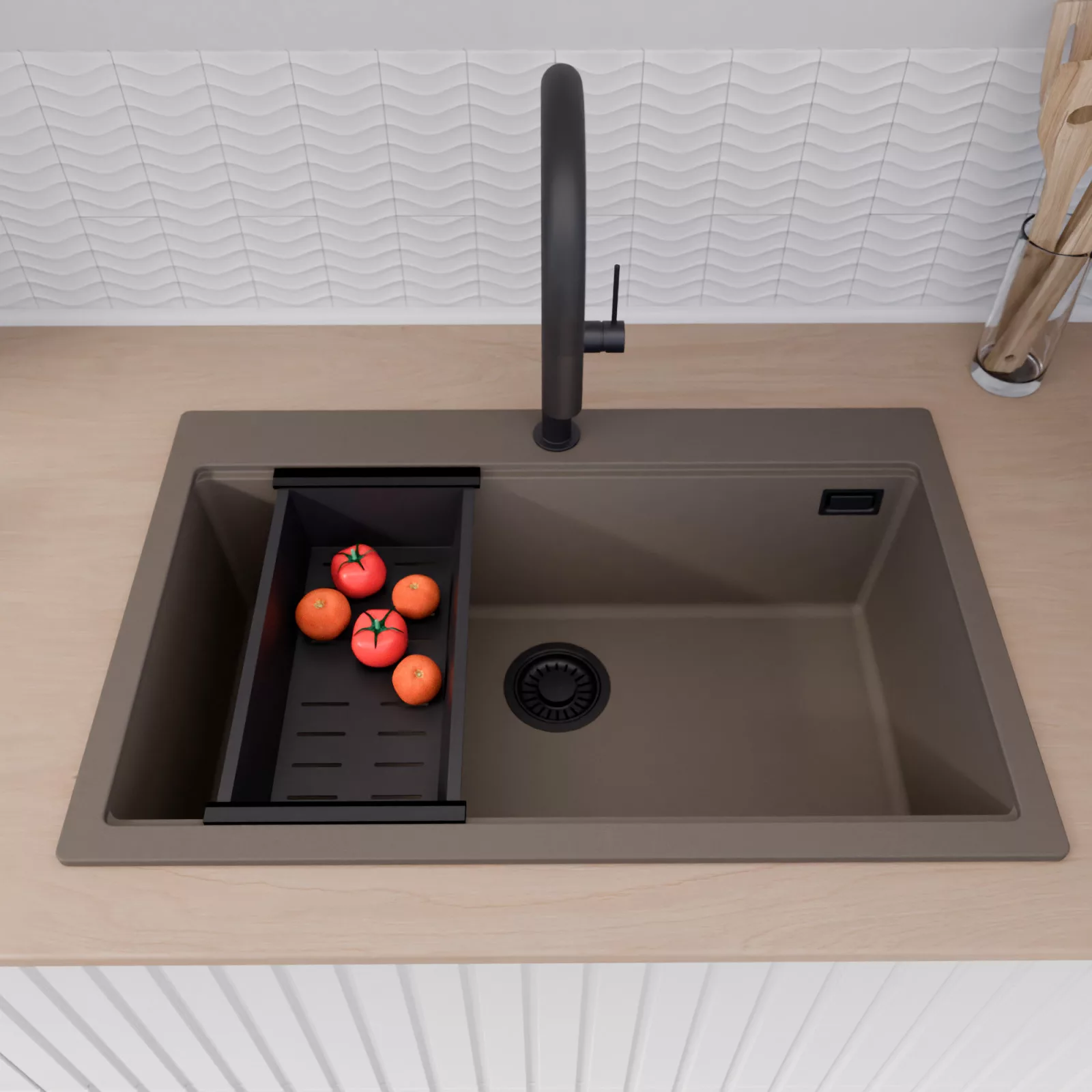 HD Infinity Tortora 78 egymedencés mosogatótálca szett, vágódeszkával, csepegtetőráccsal és kosárral, tortora