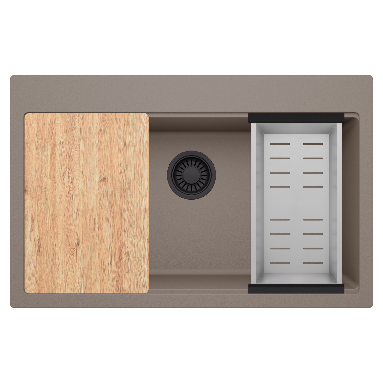 HD Infinity Tortora 78 egymedencés mosogatótálca szett, vágódeszkával és csepegtetőkosárral, tortora