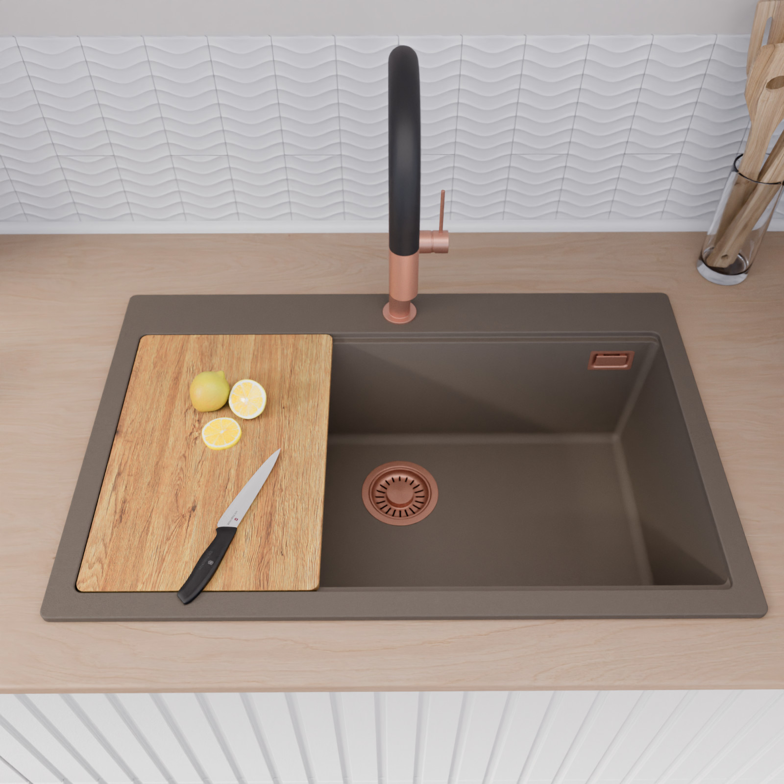 HD Infinity Tortora 78 egymedencés mosogatótálca szett, vágódeszkával és csepegtetőkosárral, tortora