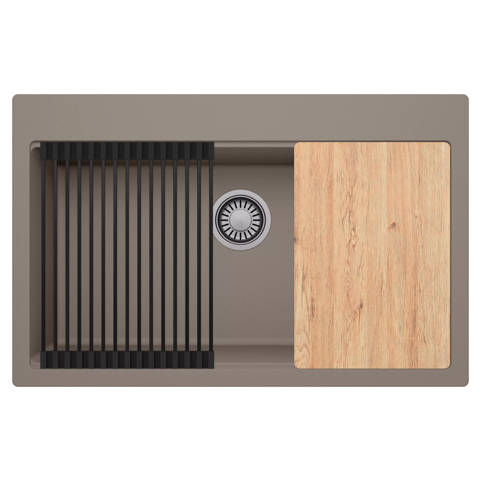 HD Infinity Tortora 78 egymedencés mosogatótálca szett, vágódeszkával és csepegtetőráccsal, tortora