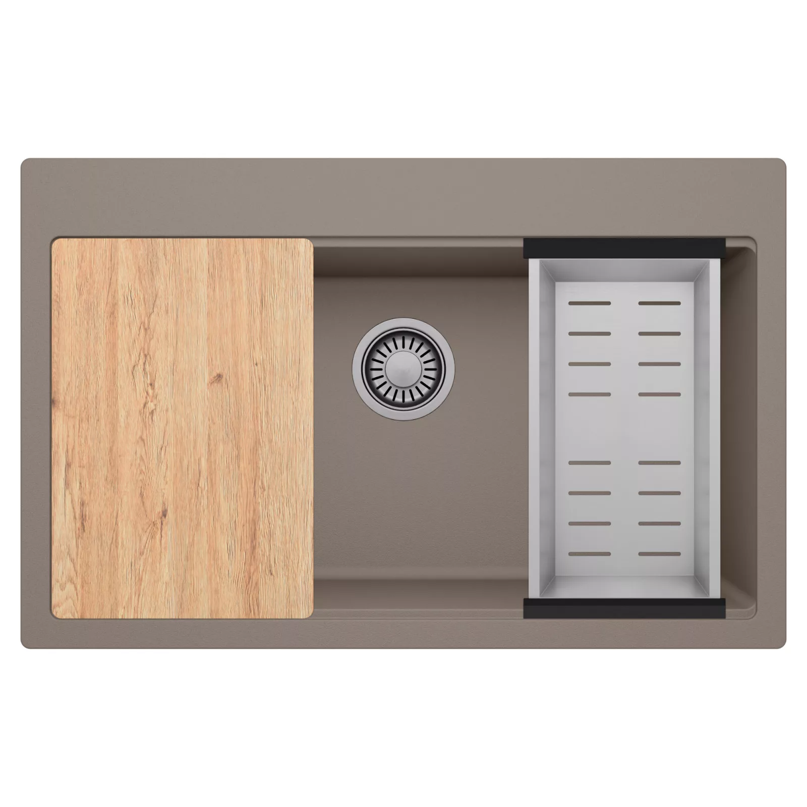 HD Infinity Tortora 78 egymedencés mosogatótálca szett, vágódeszkával és csepegtetőkosárral, tortora