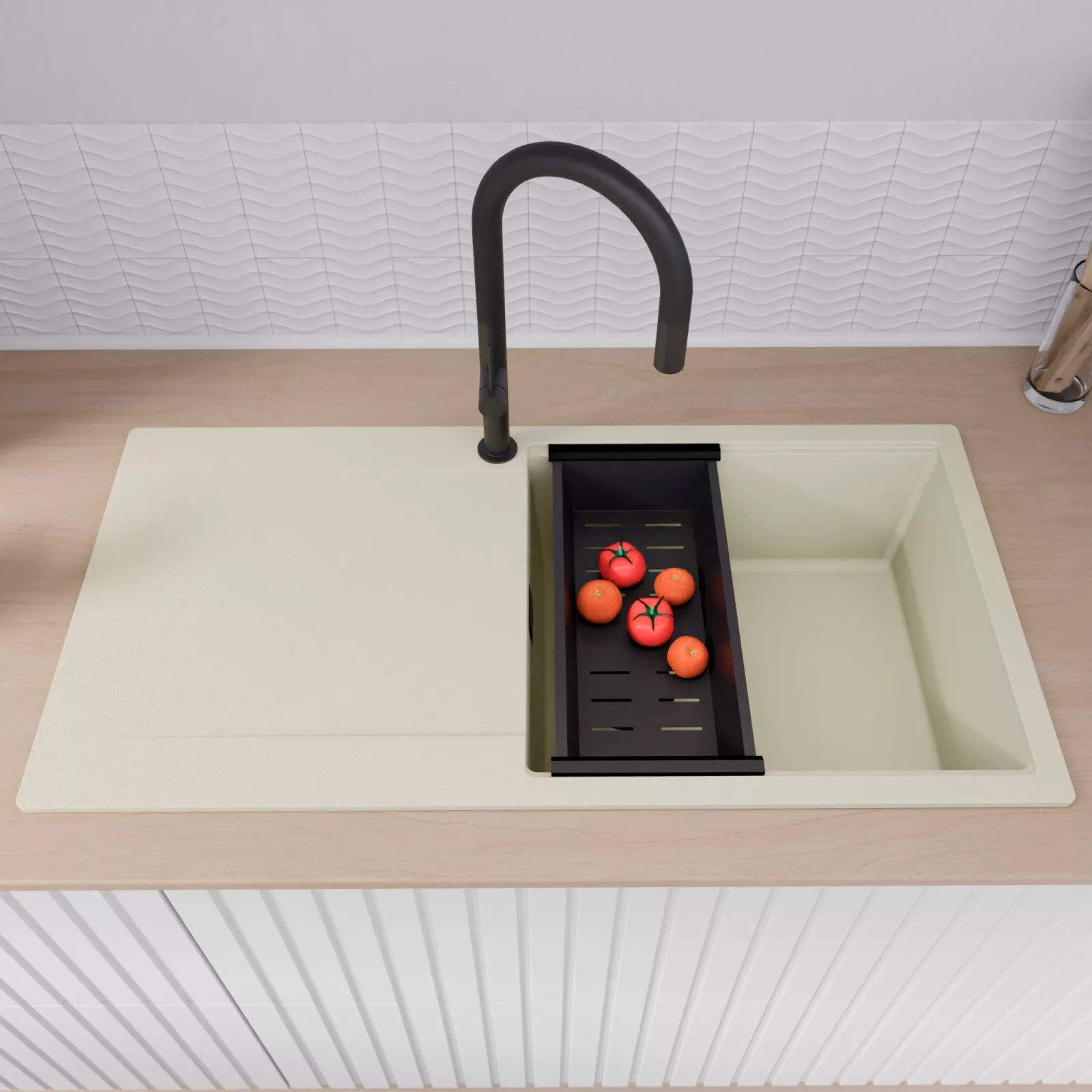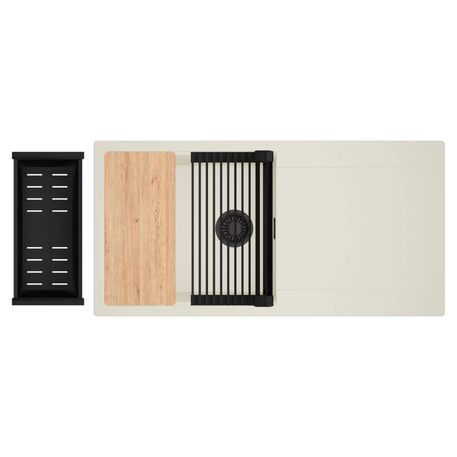 HD Onyx White 100 egymedencés mosogatótálca szett, vágódeszkával, csepegtetőráccsal és kosárral, tört fehér