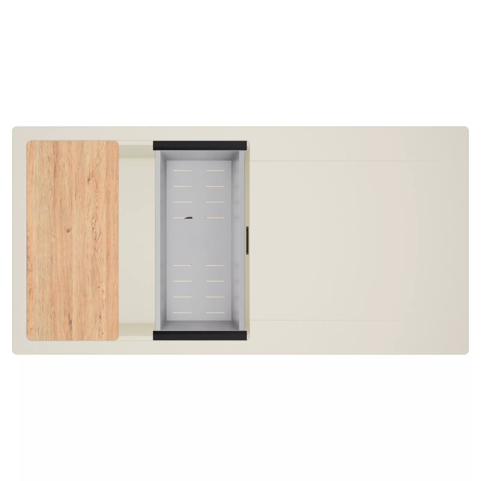 A HomeDepo SmartEdge Többfunkciós Peremrendszer egy intelligensen kialakított peremmegoldás, amely a mosogatót kompakt, mégis teljes értékű konyhai térré alakítja a mindennapok során. A speciális peremkialakítás lehetővé teszi a vágódeszka, a feltekerhető csepegtető rács, a gyümölcsmosó és a csepegtető kosár stabil, biztonságos és kényelmes elhelyezését közvetlenül a mosogató speciális belső peremén. A kiegészítők síkban csúsztathatók és szabadon kombinálhatók, így extra munkafelületet nyersz anélkül, hogy helyet foglalnál a konyhapulton – a mosogató valódi többfunkciós központtá válik.