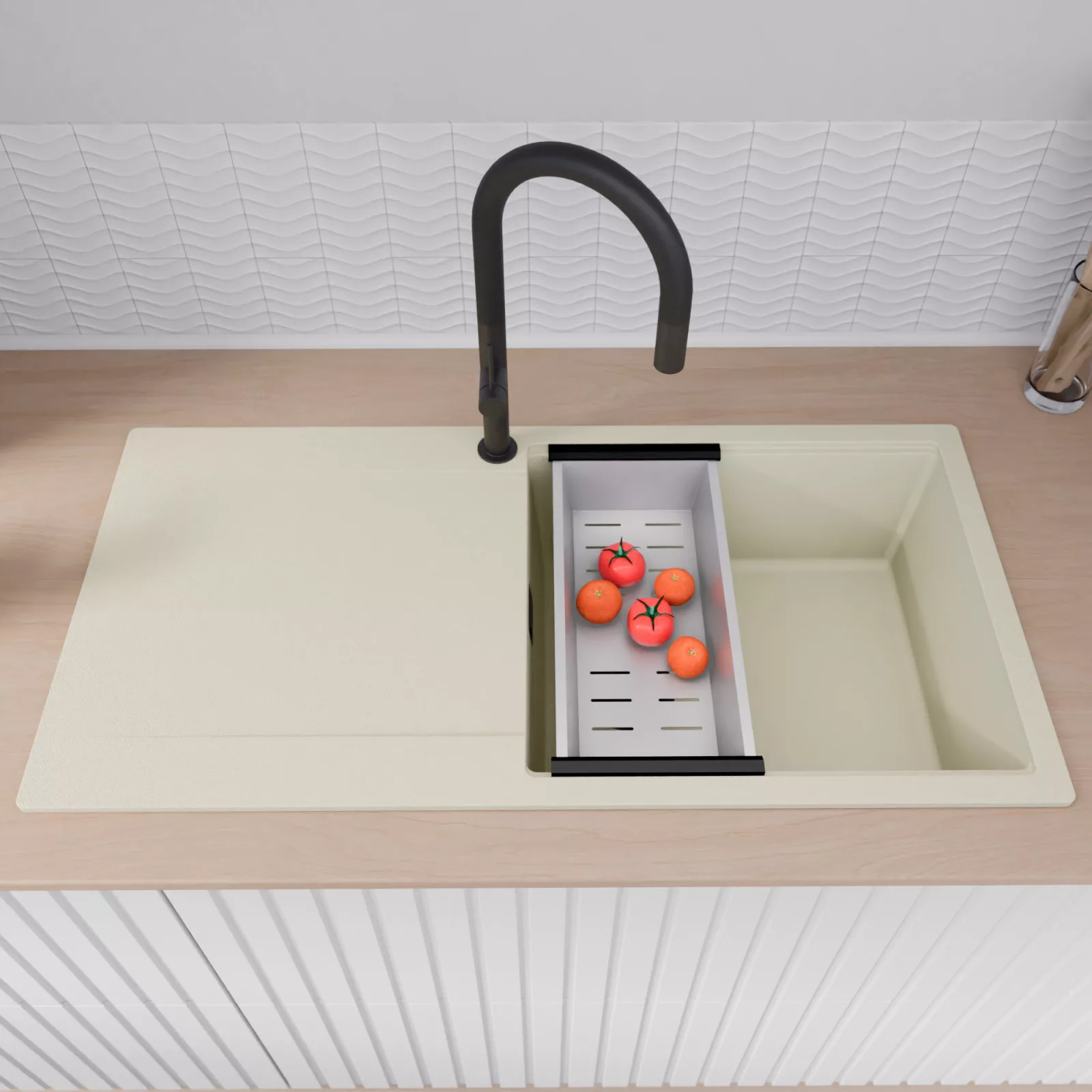 Mosogatónk magas természetes kőőrlemény-tartalmú gránit kompozitból készül, amely rendkívüli stabilitást és tartósságot biztosít. Az anyag ellenáll a magas hőmérsékletnek, a hirtelen hőingadozásoknak, valamint az ütéseknek és karcolásoknak is. Sima, zárt felülete könnyen tisztán tartható, ellenáll a foltosodásnak és az elszíneződéseknek, így hosszú éveken át megőrzi esztétikus megjelenését. Meggyőződésünk, hogy ezzel a gránit mosogatóval a mindennapi konyhai teendők kényelmesebbé és élvezetesebbé válnak.