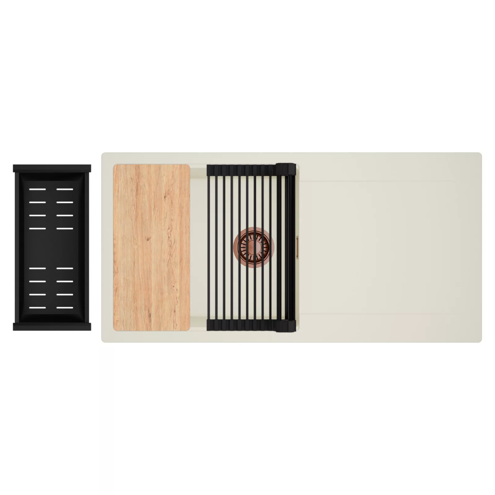 HD Onyx White 100 egymedencés mosogatótálca szett, vágódeszkával, csepegtetőráccsal és kosárral, tört fehér