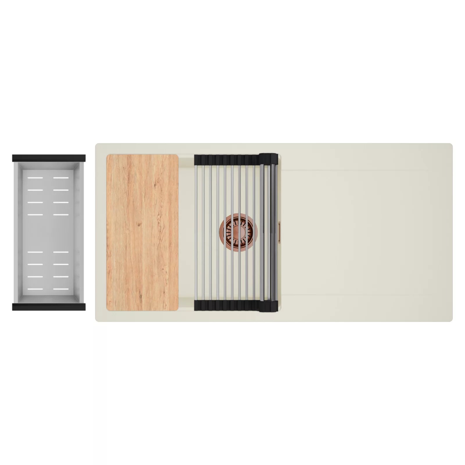 HD Onyx White 100 egymedencés mosogatótálca szett, vágódeszkával, csepegtetőráccsal és kosárral, tört fehér